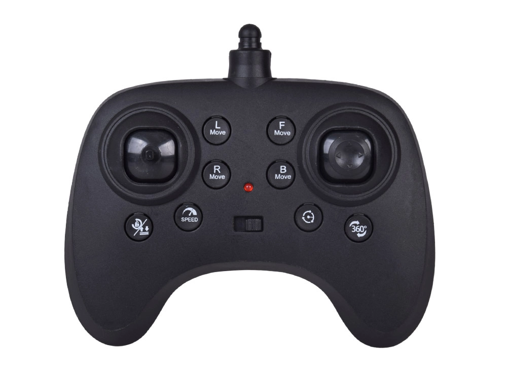 Upravljač nudi pokretanje/pristajanje jednim gumbom, odabir brzina, Headless mod, One Key Return, trimere i akrobacije 360° za brz napredak.