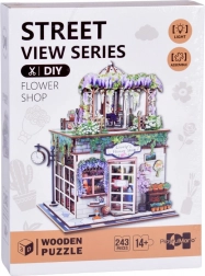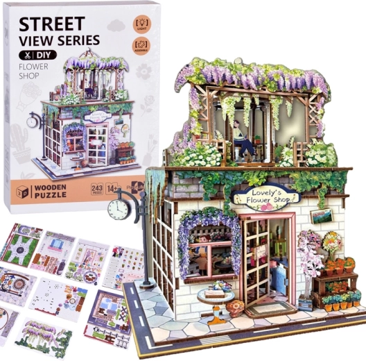 Otkrijte čaroliju minijatura s detaljnim modelom cvjećarnice koji će nakon sastavljanja zasjati nježnim LED osvjetljenjem i stvoriti magičnu atmosferu. Kroz prozore ćete zaviriti u bogato opremljenu unutrašnjost s policama i buketima, a krov krasi paviljon s penjačicama. Stabilna konstrukcija od kvalitetnog drva oduševit će kao stilska dekoracija za dom i kao originalan poklon.