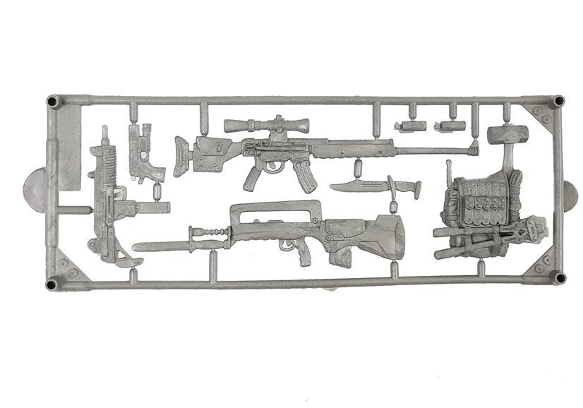 U pakiranju ćete naći 2 figurice vojnika, palubni zrakoplov, gumeni čamac/ponton i set oružja za raznoliku taktičku igru.