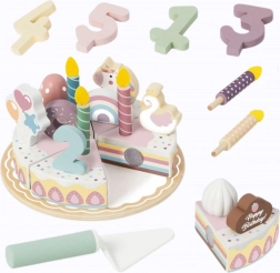 Organizirajte savršenu proslavu svaki dan! Drvena torta za rezanje pažljivo je izrađena u nježnim bojama, djeluje realistično i potiče djecu na simboličku igru. Dijelovi se drže pomoću čička, pa se torta lako nareže i ponovno složi – idealno za dječje ručice.