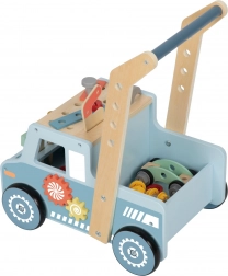 Ova pametna hodalica u obliku plavog kamiona idealan je pomoćnik za prve korake i ujedno zabavna STEM radionica. Robusna drvena konstrukcija pruža stabilnost, dok okretni zupčanici, prijenosi i montažne ploče pozivaju na istraživanje principa mehanike i razvoj koordinacije.
