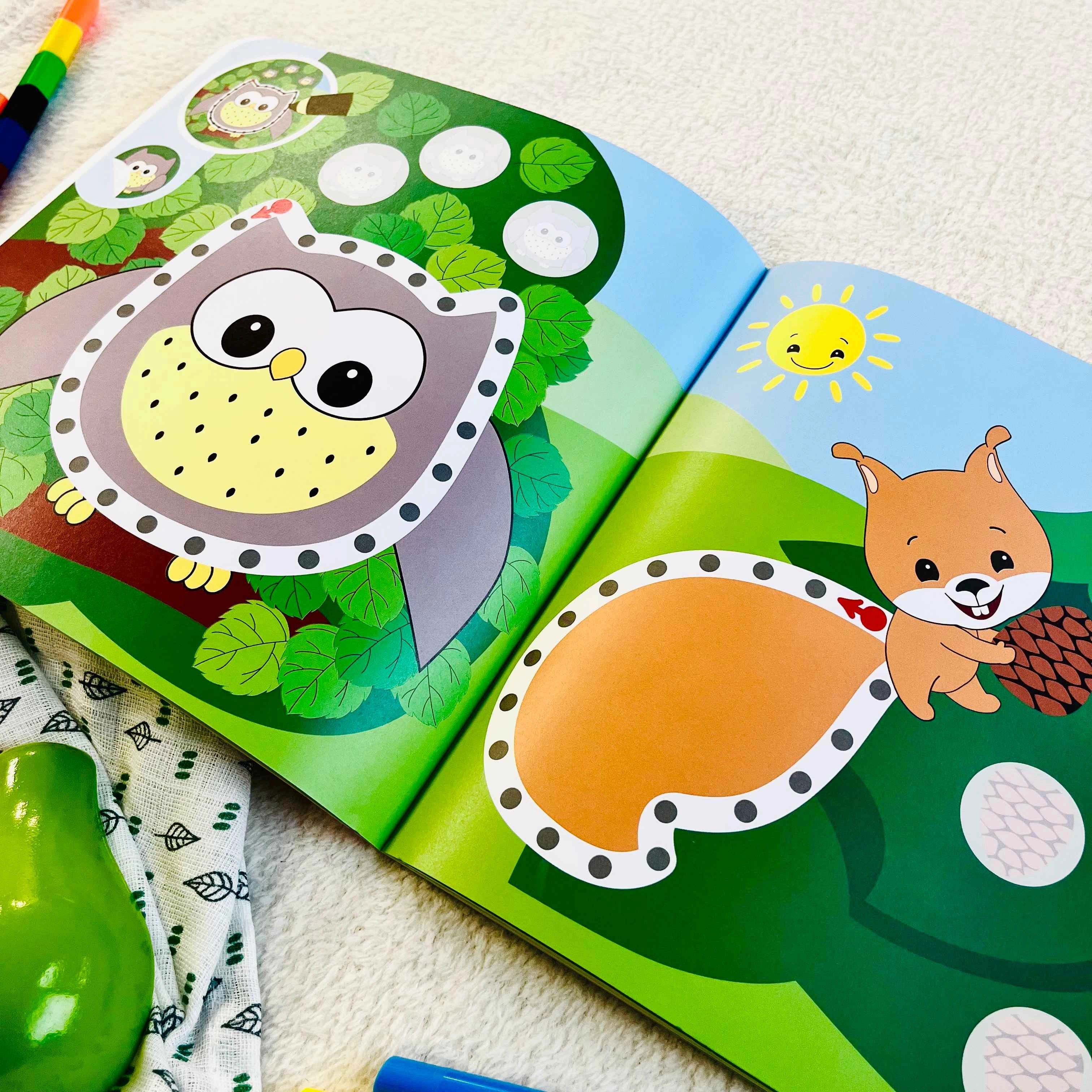Otkrijte zabavnu bilježnicu u kojoj djeca uz pomoć naljepnica i spajanja točkica upoznaju vesele životinjske prijatelje. Kombinacija lijepljenja i precrtavanja razvija koordinaciju oko–ruka i potiče kreativnost.