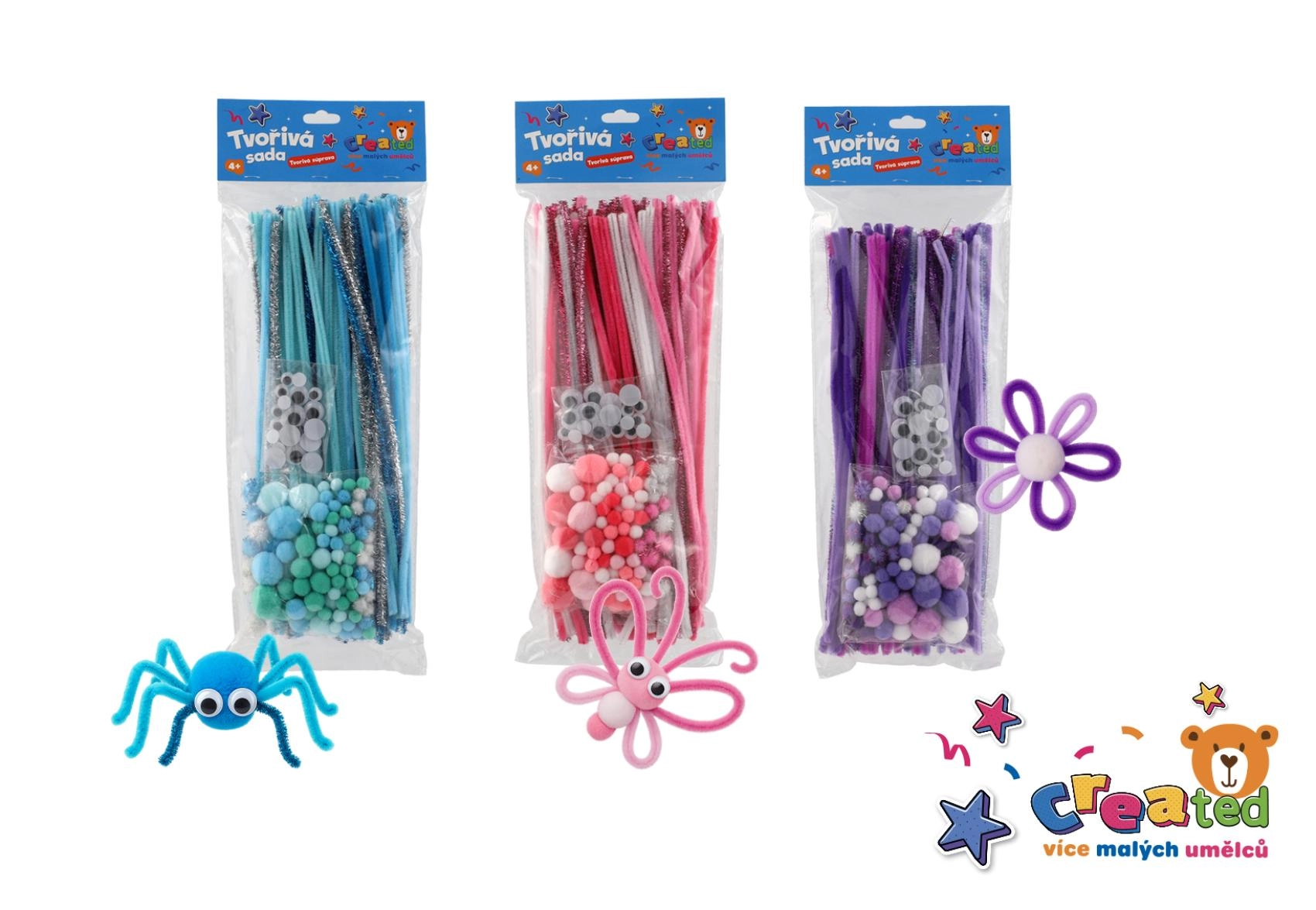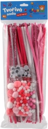 Ovaj kreativni set nudi tri izražajne boje na praktičnoj kartici dimenzija 15 × 40 cm. Djeca iz njega lako mogu izraditi simpatične životinjice, šarene cvjetove ili originalne ukrase. Set potiče razvoj kreativnosti, strpljenja i fine motorike, stoga je odličan za vrtiće, radionice i obiteljsko stvaranje kod kuće.