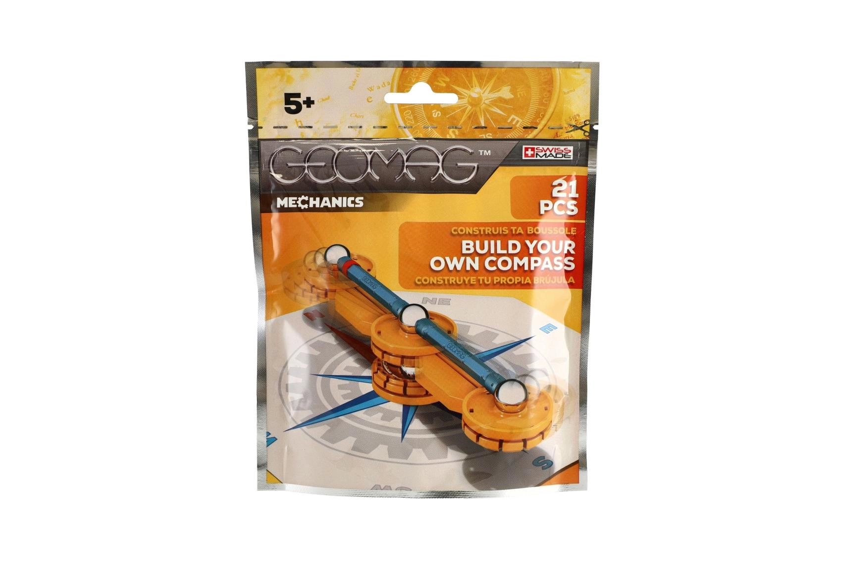 Dijelovi su međusobno kompatibilni s drugim GEOMAG setovima, pa se kompas može proširiti novim mehanizmima i konstrukcijama. Komplet potiče prostornu predodžbu, strpljenje i tehničko razmišljanje.