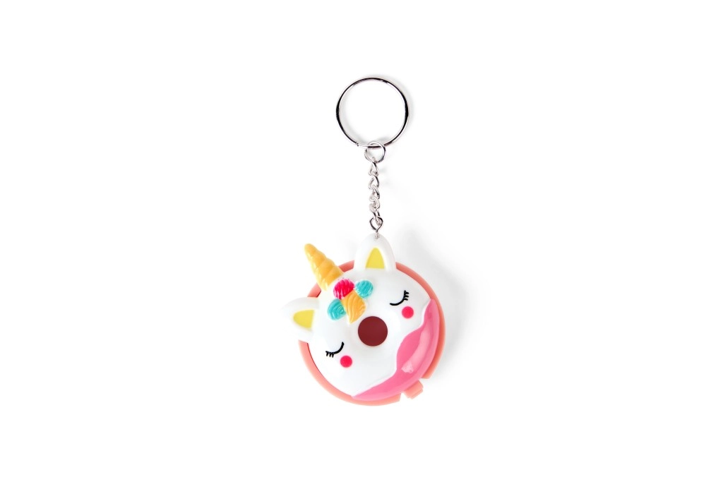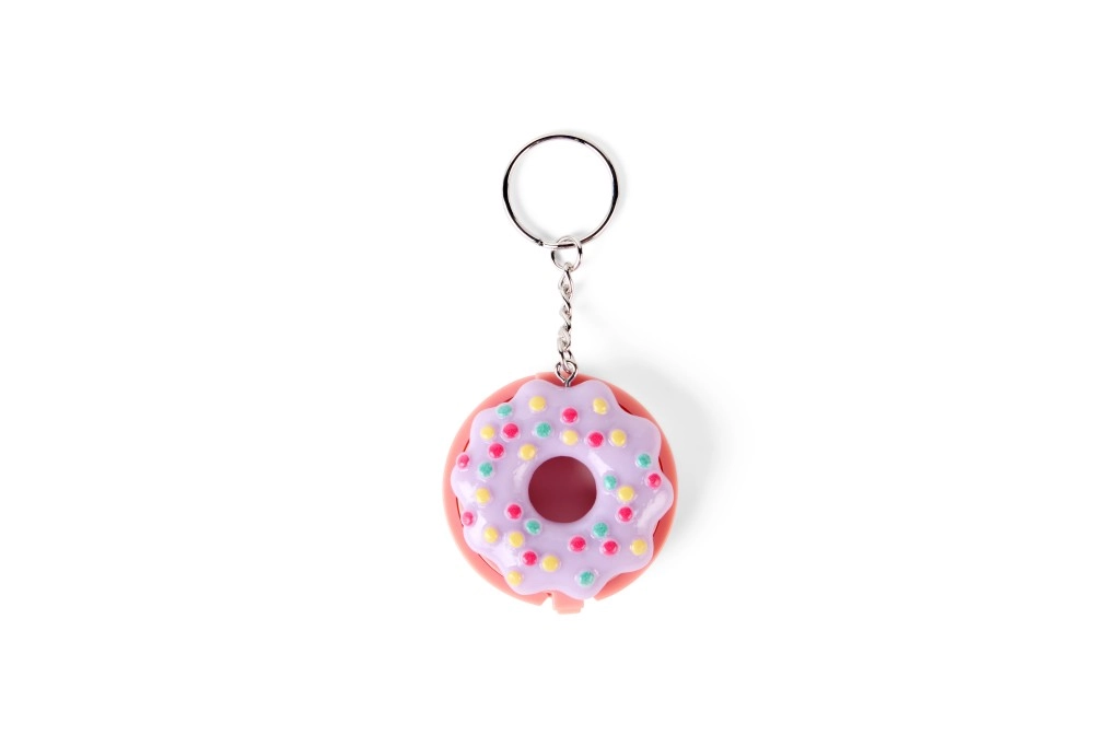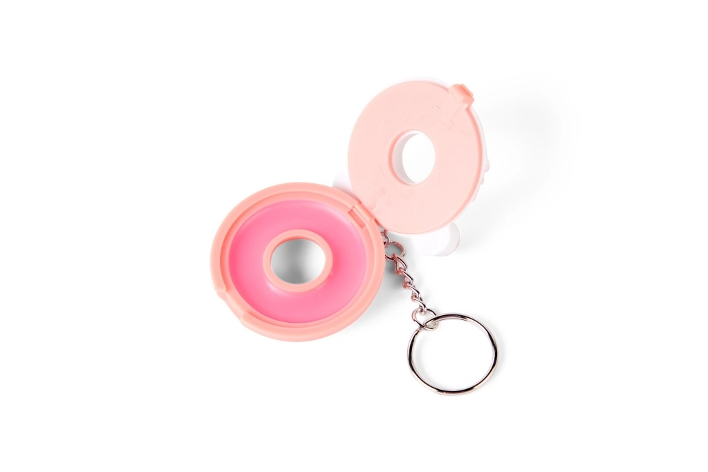 Kompaktno pakiranje u obliku ružičastog donuta s raznobojnim „sprinkles“ i metalnim privjeskom za jednostavno pričvršćivanje na ruksak ili ključeve.