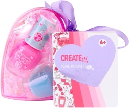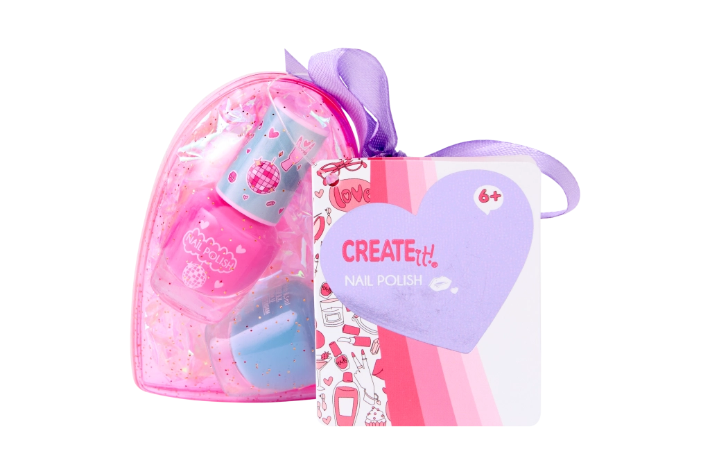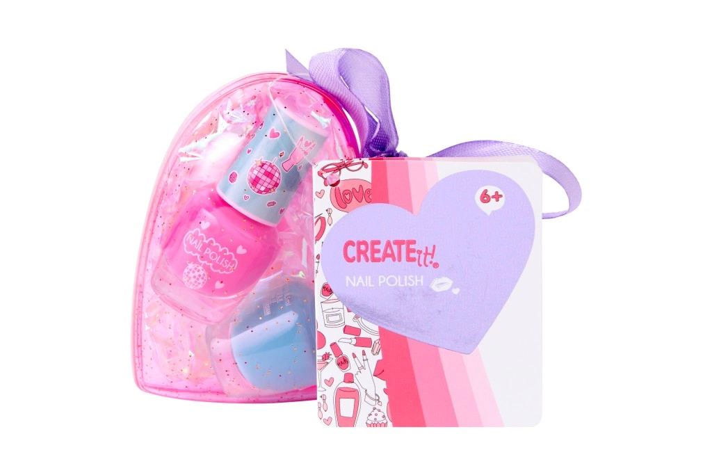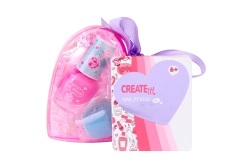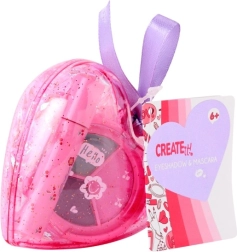 Presladak dječji kozmetički set u srcolikom etuiju CREATE IT! donosi sve za razigrano šminkanje. U njemu ćete pronaći sjajila za usne, sjenila za oči, maskaru i lakove za nokte – idealno za prve make-up eksperimente. Zahvaljujući prozirnom srcolikom pakiranju s šljokicama i ljubičastoj vrpci savršen je kao poklon i za putovanja. Dostupne su tri različite varijante.