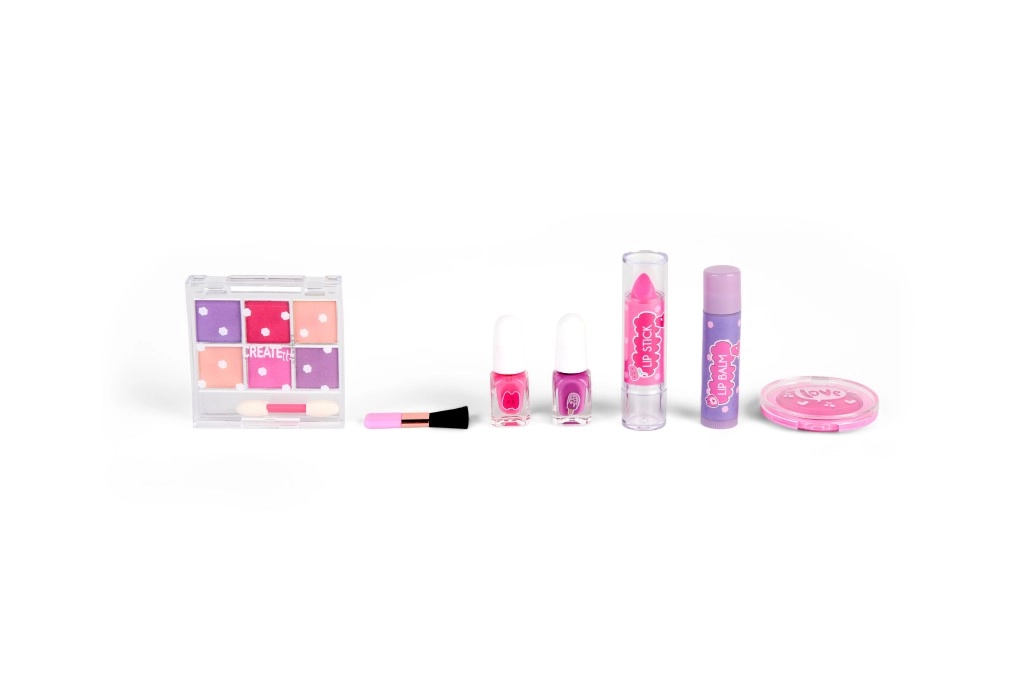 Djeca s njim mogu sigurno isprobati osnove šminkanja, uskladiti nijanse očiju i usana, ukrasiti nokte i dodati kosi zabavni šareni pramen uz pomoć krijone. Pregledno pakiranje i jednostavni aplikatori potiču samostalnost i razvoj mašte.