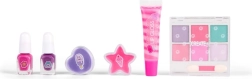- 2× lak za nokte, krijona za kosu, veliki kist, balzam za usne, ruž, mali obostrani kistić, paleta 6 svjetlucavih sjenila za oči