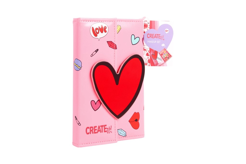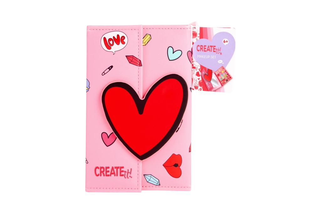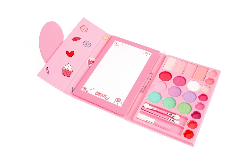 Otkrijte kreativni svijet šminkanja s dječjim setom CREATE IT! u obliku magnetske knjige. Zahvaljujući pametnoj sklopivoj kutijici sa srcem sve je pregledno organizirano, jednostavno za prenošenje i spremno za trenutačnu upotrebu. Šarene palete i dodaci potiču sigurno eksperimentiranje, razvijaju maštu i finu motoriku.
