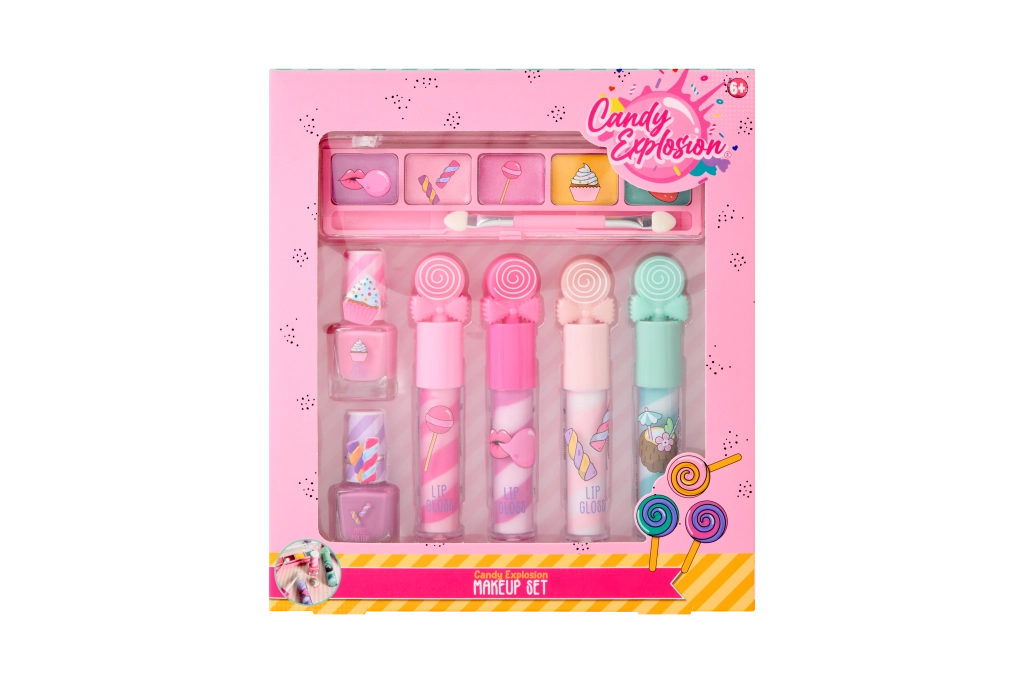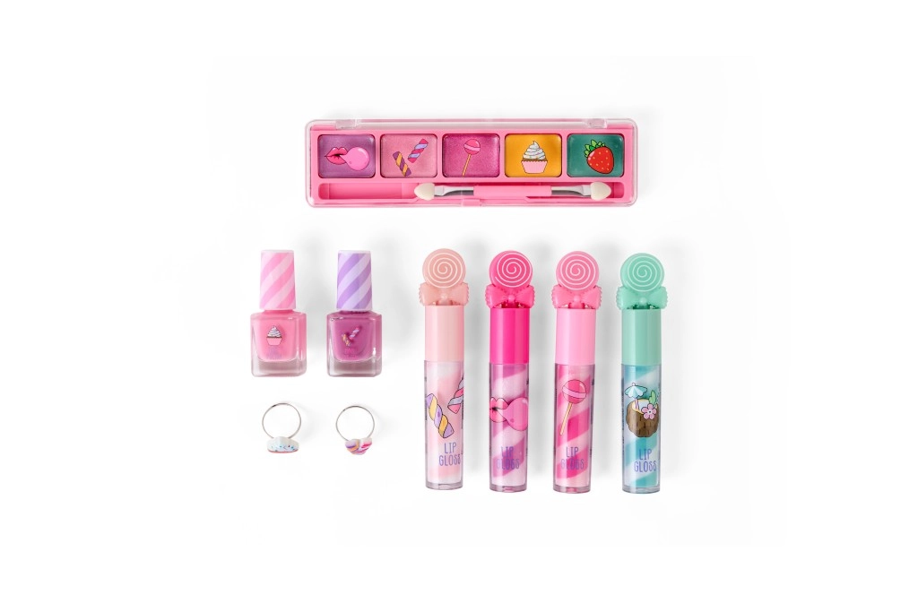 Zabavan dječji set šminke Candy Create It pretvara igru u kreativni beauty show. Sadrži sjenila za oči, sjajila za usne, lakove za nokte i slatke prstenčiće u razigranom slatkiš-stilu – idealno za sigurne prve korake u svijet make-upa.