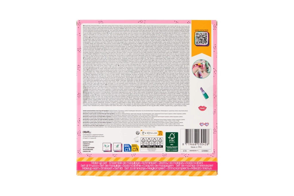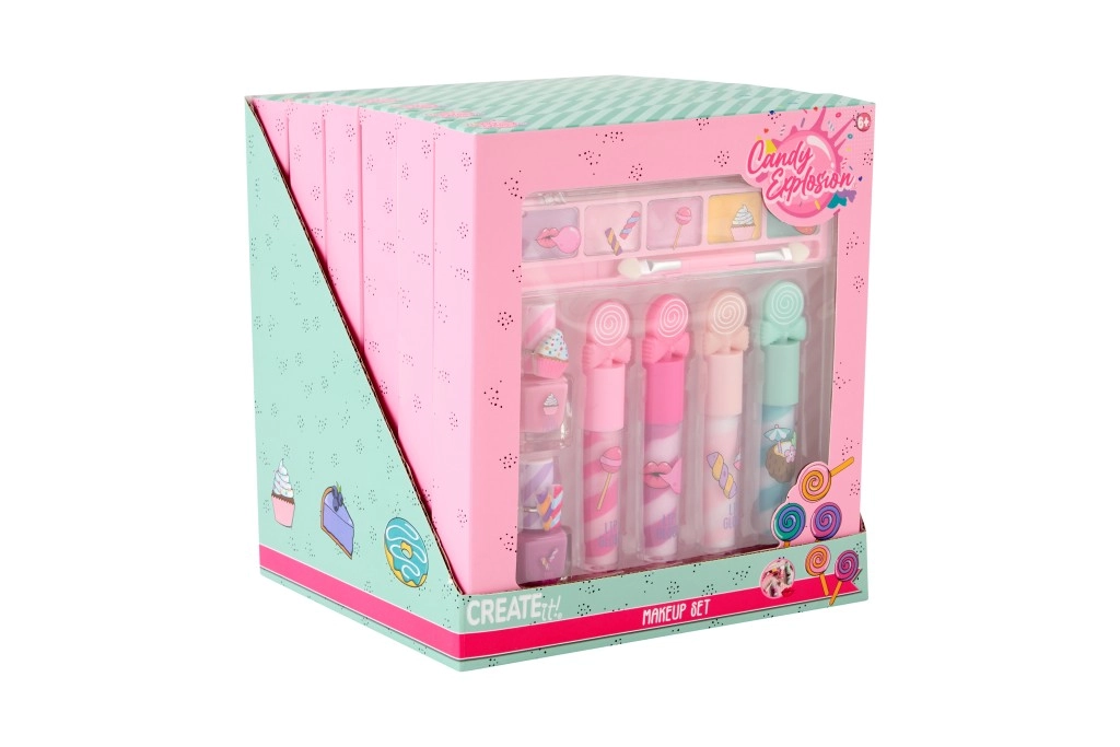 Darujte djeci svijet boja i mašte uz set šminke Candy Create It. Pastelne nijanse, razigrani oblici i pregledno organizirano pakiranje potiču kreativnost, finu motoriku te radost presvlačenja i uloga. Set je osmišljen za osnovnu kozmetičku igru i jednostavnu aplikaciju.