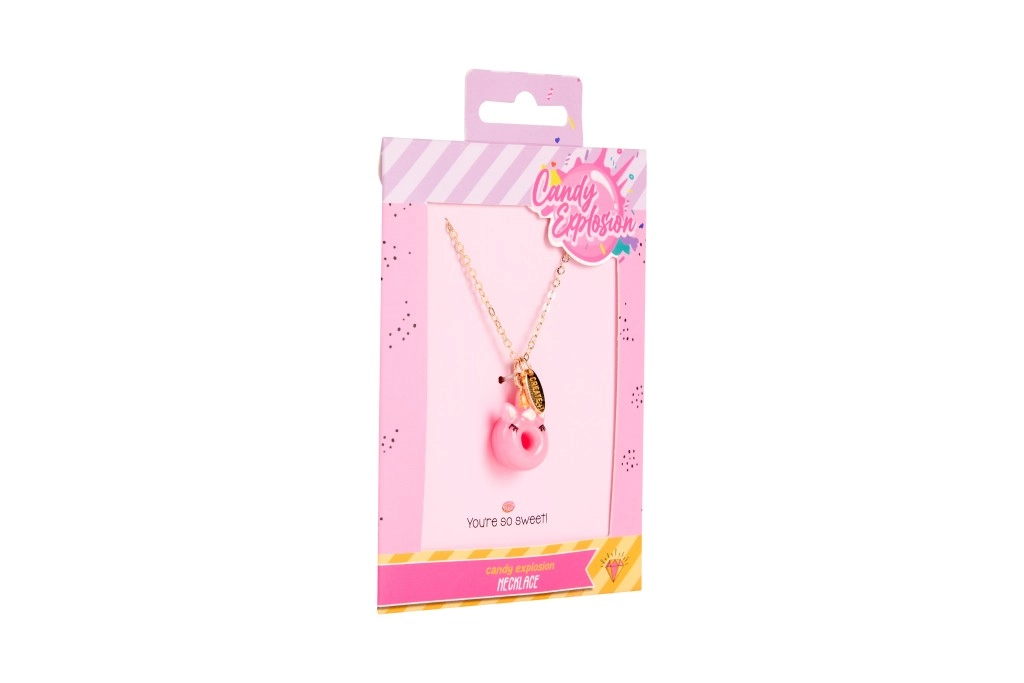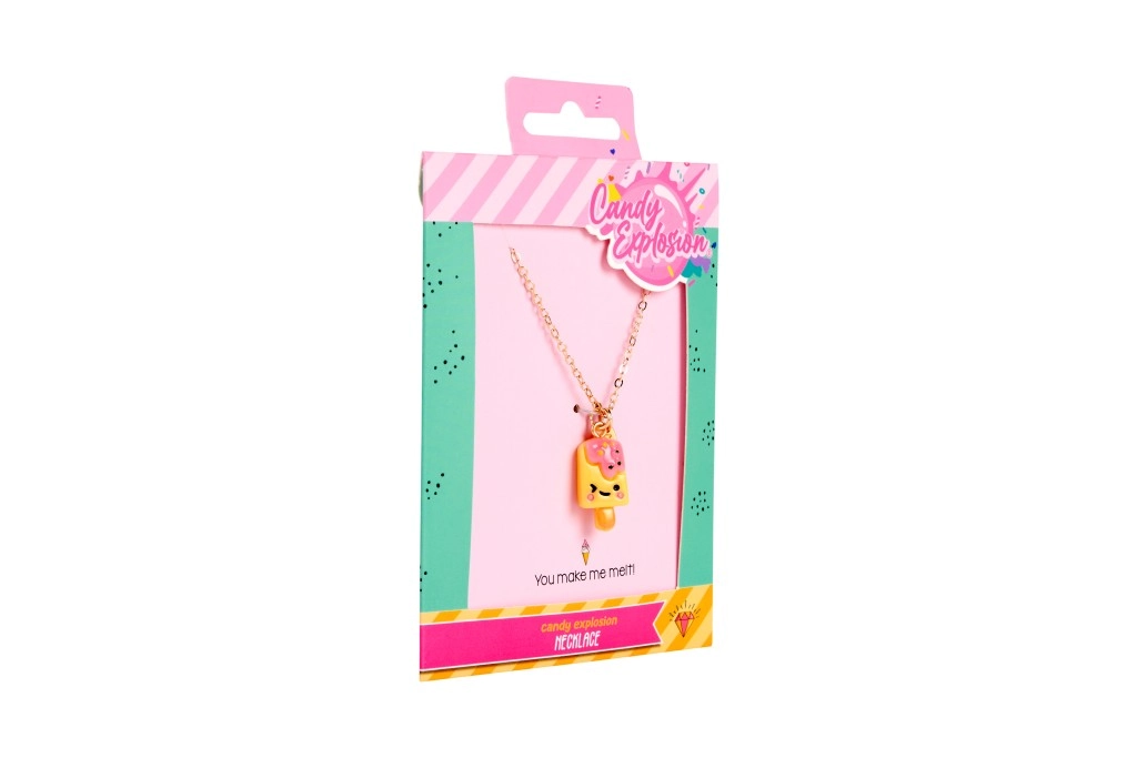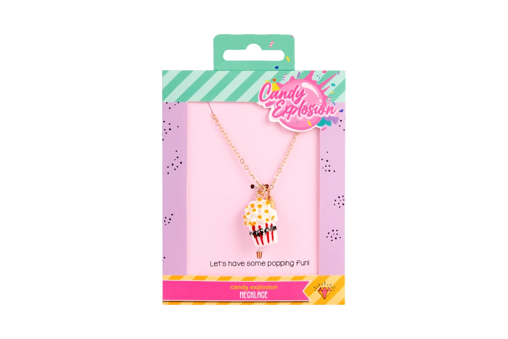 Svaka ogrlica dolazi na stiliziranoj kartici Candy Explosion s otvorom za vješanje – idealno kao mali poklon za radost.