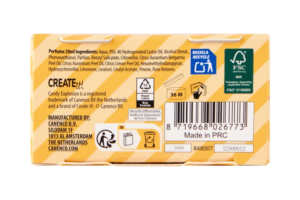 Otkrijte preslatku toaletnu vodu koja miriše na svijet slastica. CREATE IT! Candy Bonbon donosi lagan, sladak miris koji je razigran, veseo i idealan za svakodnevno nošenje. Zahvaljujući nježnom sastavu, ugodan je izbor za mlade djevojke.
