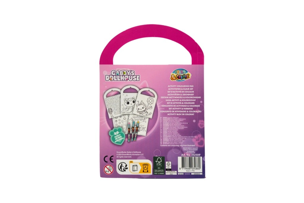 kreativna bojanka s zadacima i voštanim bojama GABBY’S DOLLHOUSE