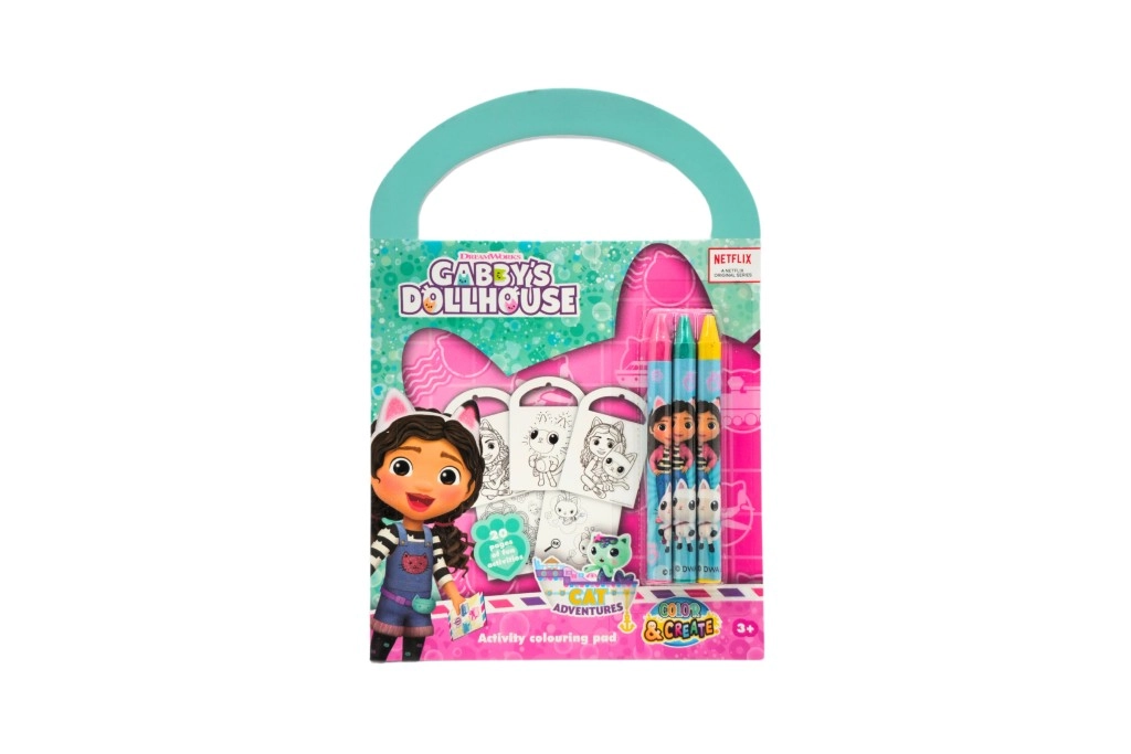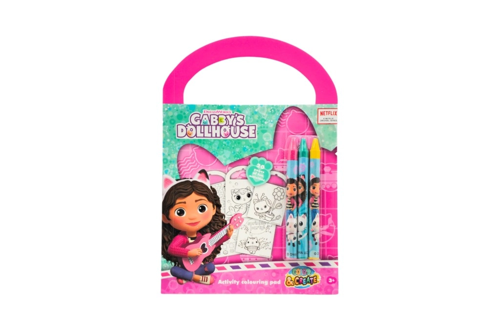 Otkrijte čarobni svijet GABBY’S DOLLHOUSE u prijenosnoj kreativnoj bilježnici s bojankama, aktivnostima i zagonetkama. Integrirana ručka olakšava prenošenje, pa je bilježnica izvrsna za izlete, automobil i posjete. U pakiranju se nalaze 3 šarene voštane boje za trenutačnu zabavu bez dodatne kupnje.