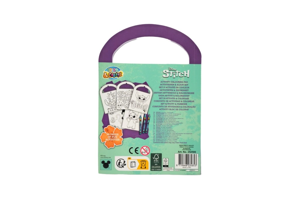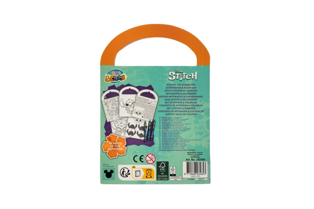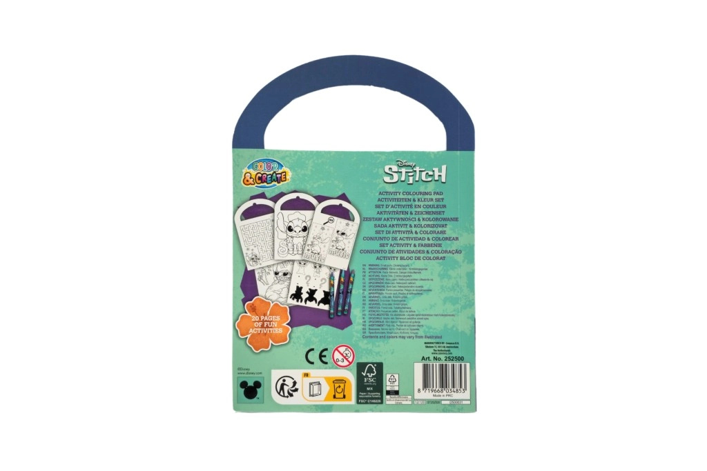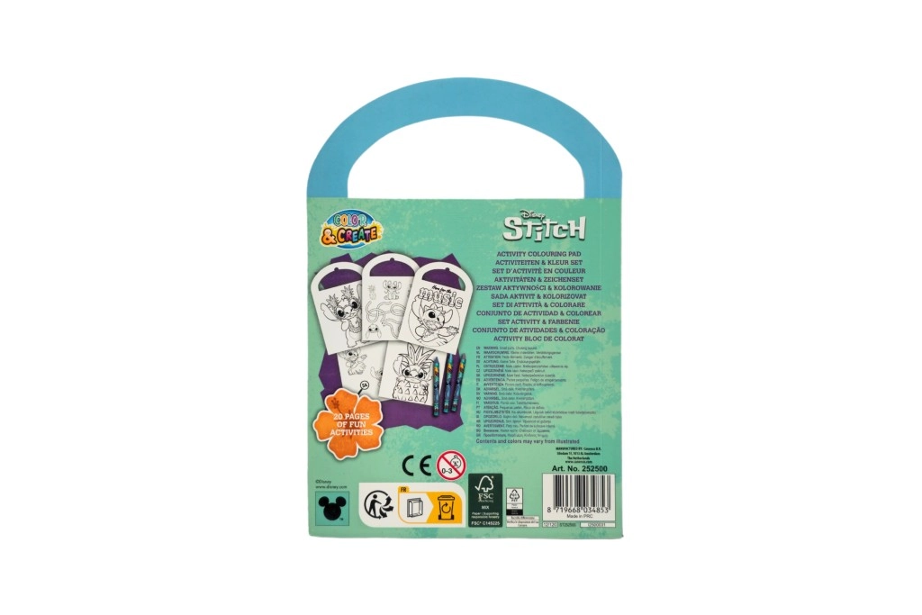 Otkrijte čarobni svijet DISNEY STITCH u praktičnoj bojanci s aktivnostima koja će zabaviti djecu uvijek i posvuda. Zahvaljujući kompaktnom formatu s integriranom ručkom, sveska je idealna za putovanja autom, u restoranu i na odmoru.