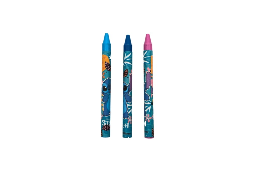 Trenutna zabava bez dodatne kupnje pribora – tri voštane bojice s motivom STITCH za ugodno bojanje.