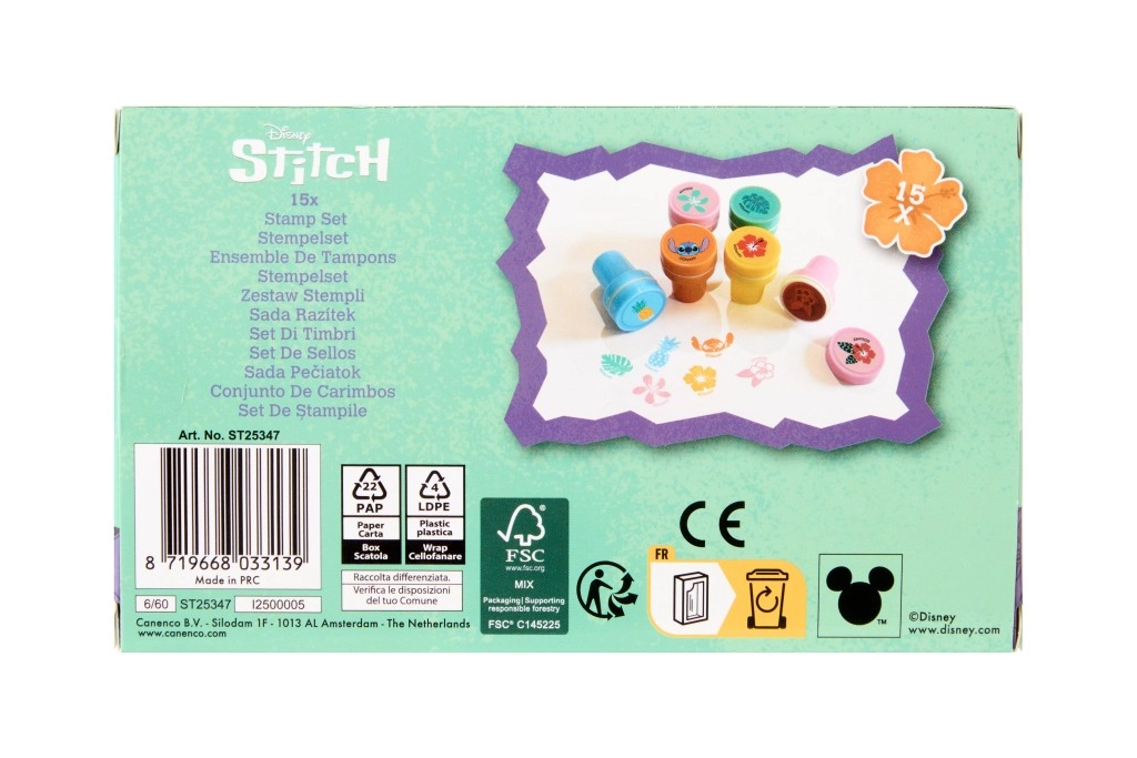 Kreativni set pečata s motivima iz omiljene serije STITCH razveselit će sve male ljubitelje stvaranja. U pakiranju se nalazi 15 kom pečata, šareni jastučić s tintom i dodaci za lako ukrašavanje crteža, čestitki i školskih bilježnica.
