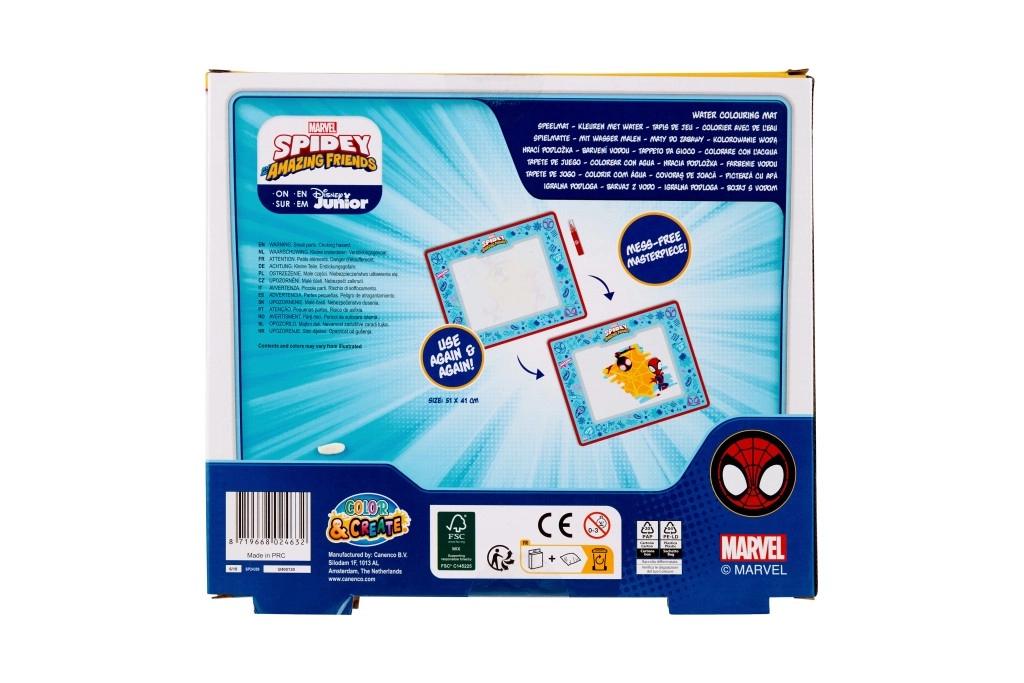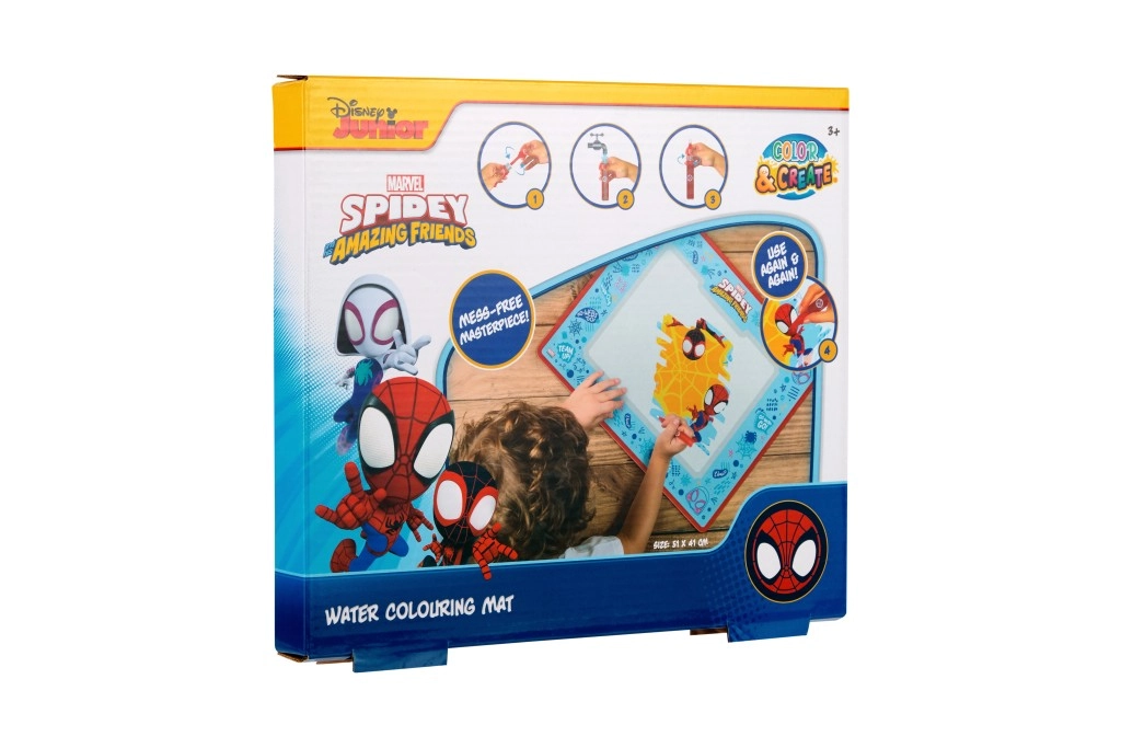 Ova kreativna podloga s motivom SPIDEY sjajan je način da djecu zaokupite slikanjem bez boja i mrlja. Posebna vodena olovka ostavlja na podlozi šarene tragove koji nestaju nakon sušenja, tako da zabava može trajati iznova i iznova.