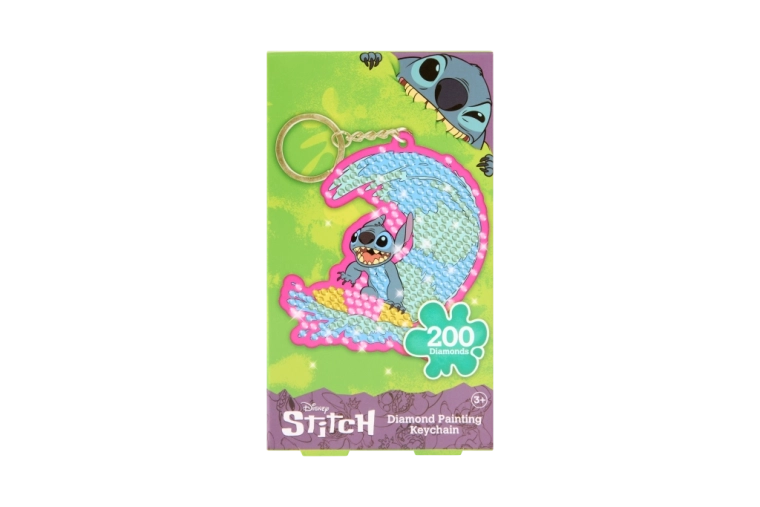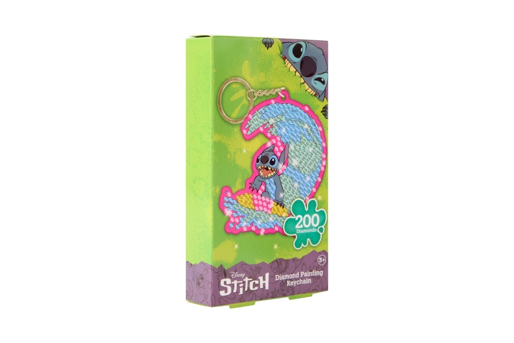 Otkrijte zabavnu i opuštajuću izradu s DIY setom za dijamantno slikanje. Motiv Stitch surfer ističe se živim bojama i sjajem sitnih kamenčića koje jednostavno postavljate pomoću priloženog stylusa. Gotov privjesak je lagan, izdržljiv i spreman ukrasiti ključeve ili torbu.