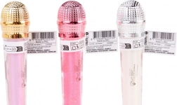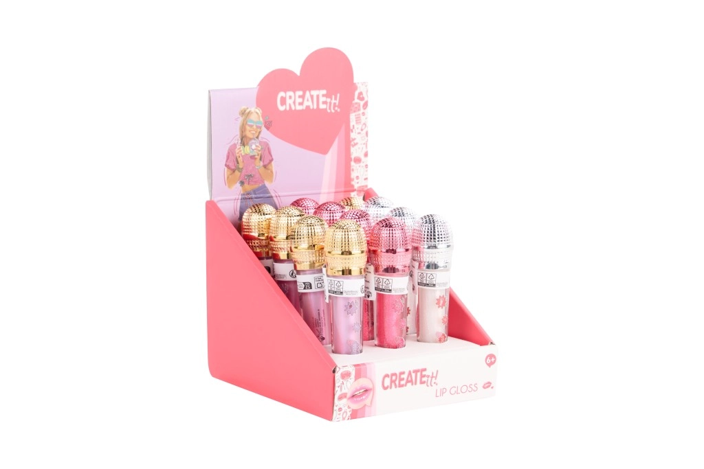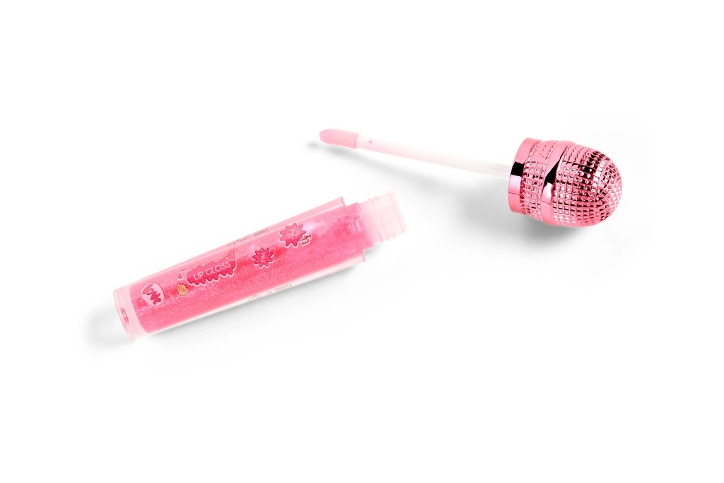 Zabavno sjajilo za usne u obliku mikrofona od Create It! spaja sjaj, hidrataciju i razigrani dizajn. Prozirno kućište otkriva svjetlucavu ružičastu nijansu, dok ukrasni čep poput mikrofona čini izvrstan dar za male ljubiteljice make-upa i pjevanja.
