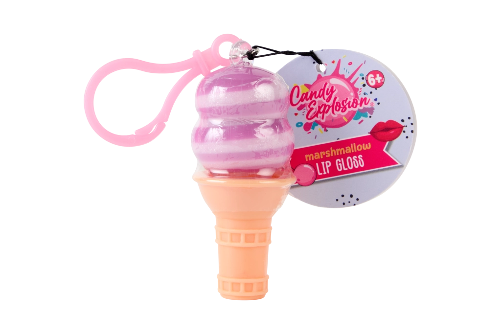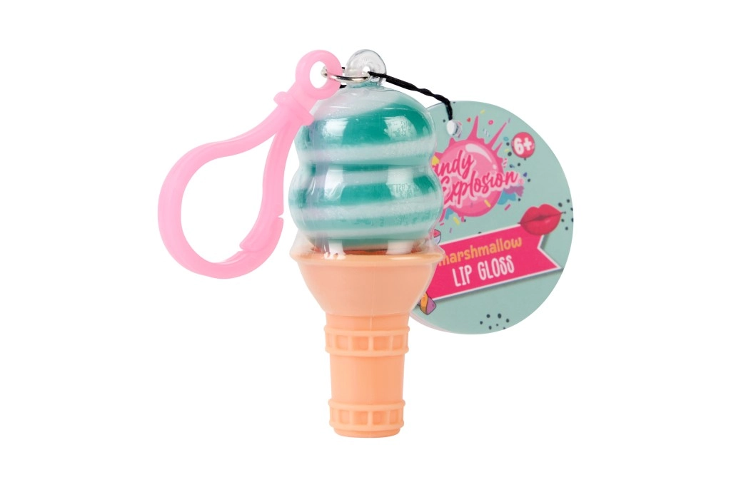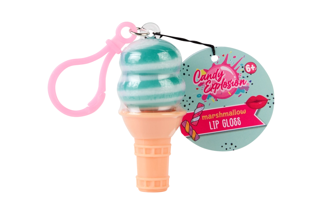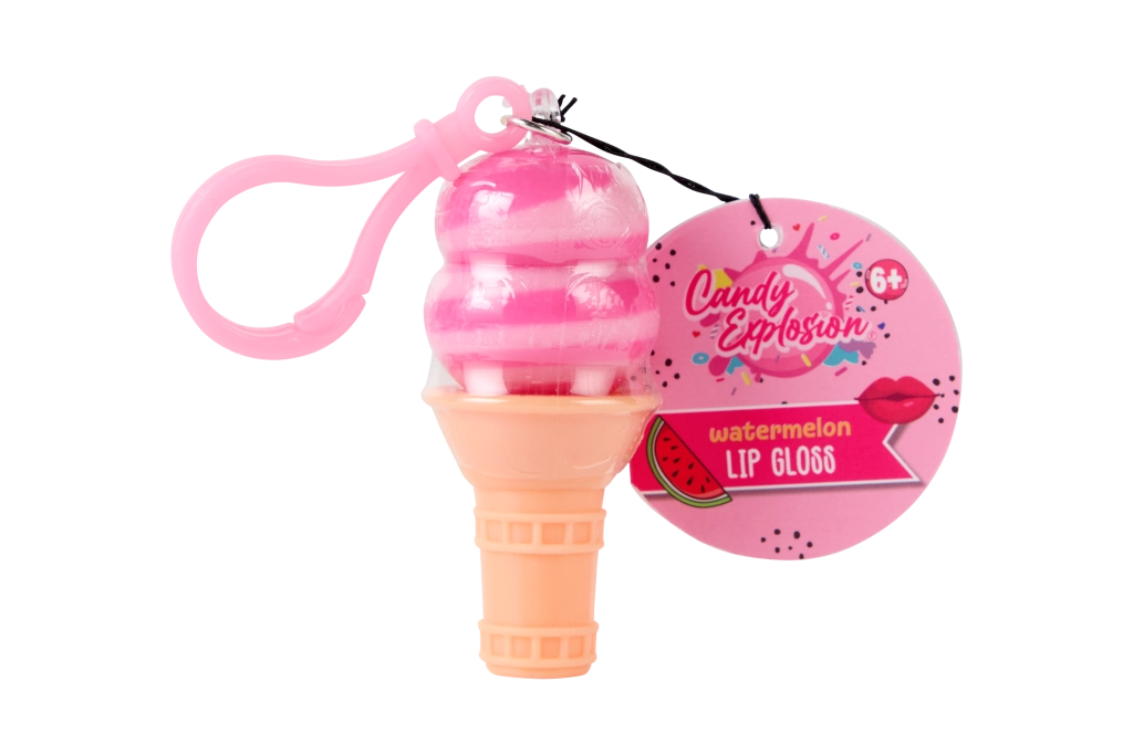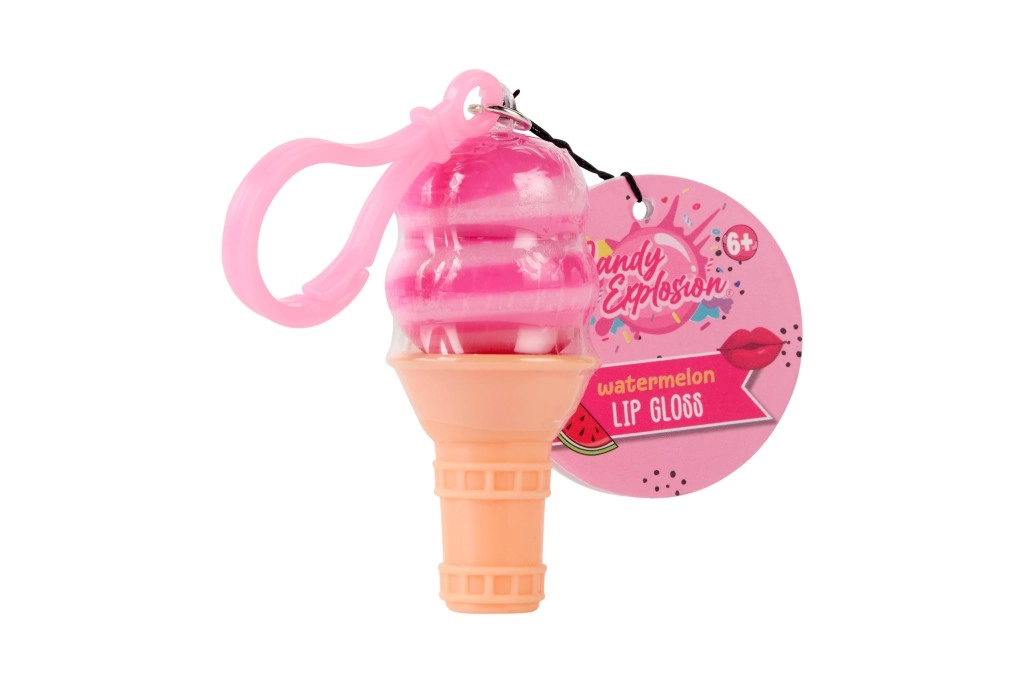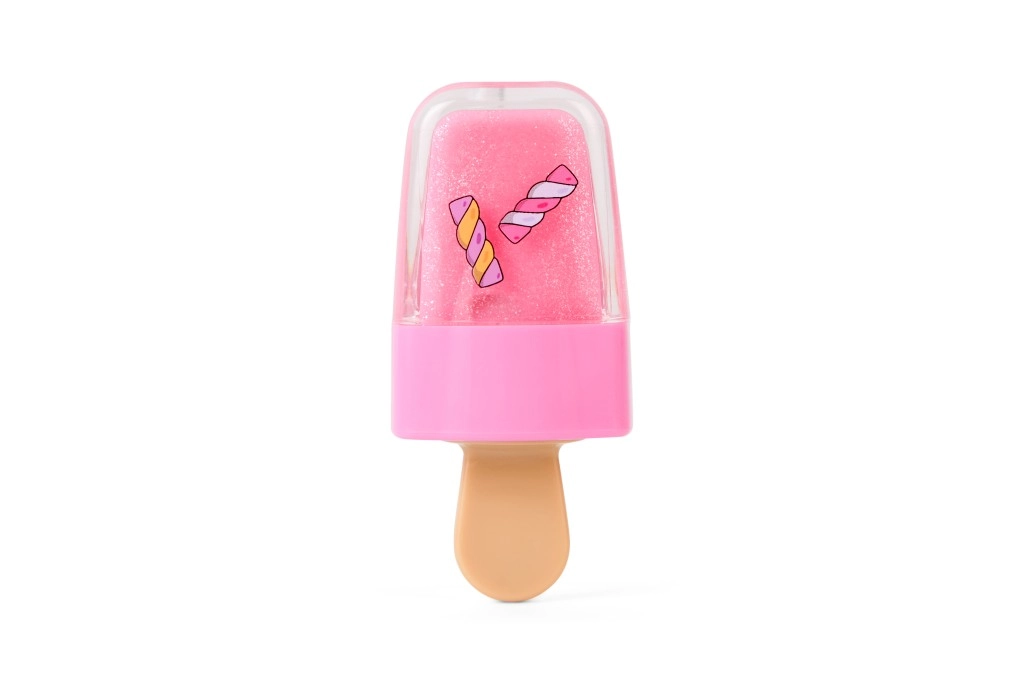 Slatko sjajilo za usne u obliku sladoleda ili sladoleda na štapiću s praktičnim klipom za ključeve. Pruža nježan sjaj, hidrira i mirisno osvježava usne omiljenim okusima – lubenica, marshmallow i borovnica. Sjajan izbor za djecu od 6 godina naviše i sve ljubitelje razigranih kozmetičkih dodataka.