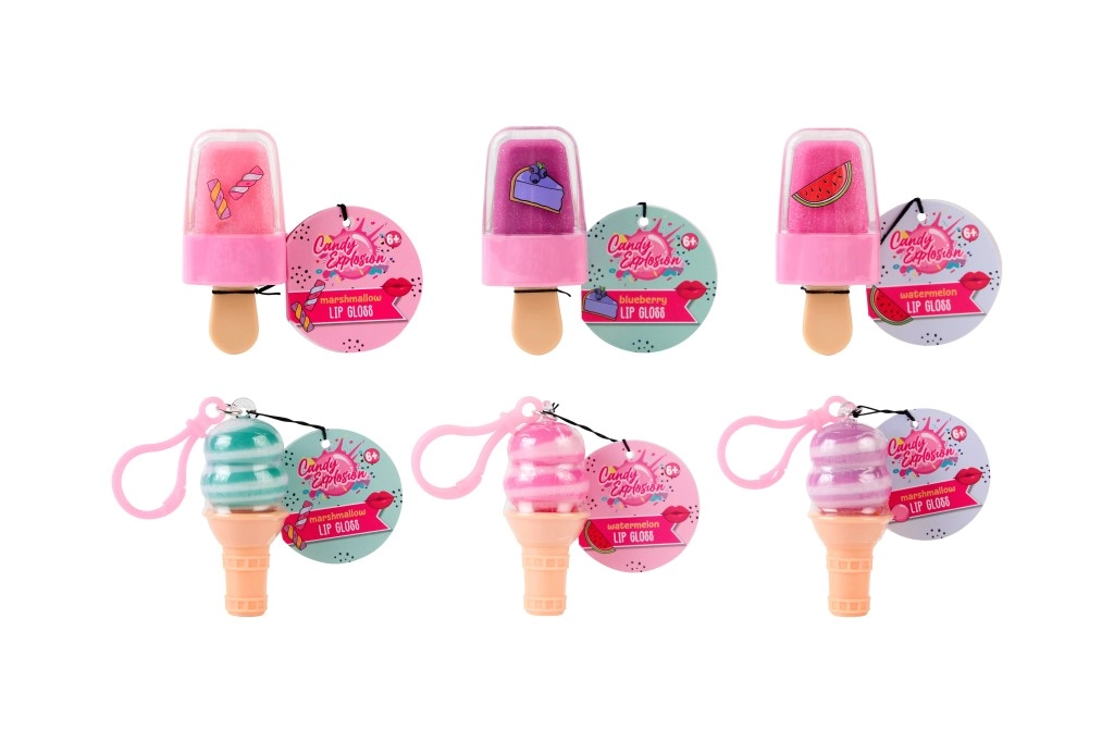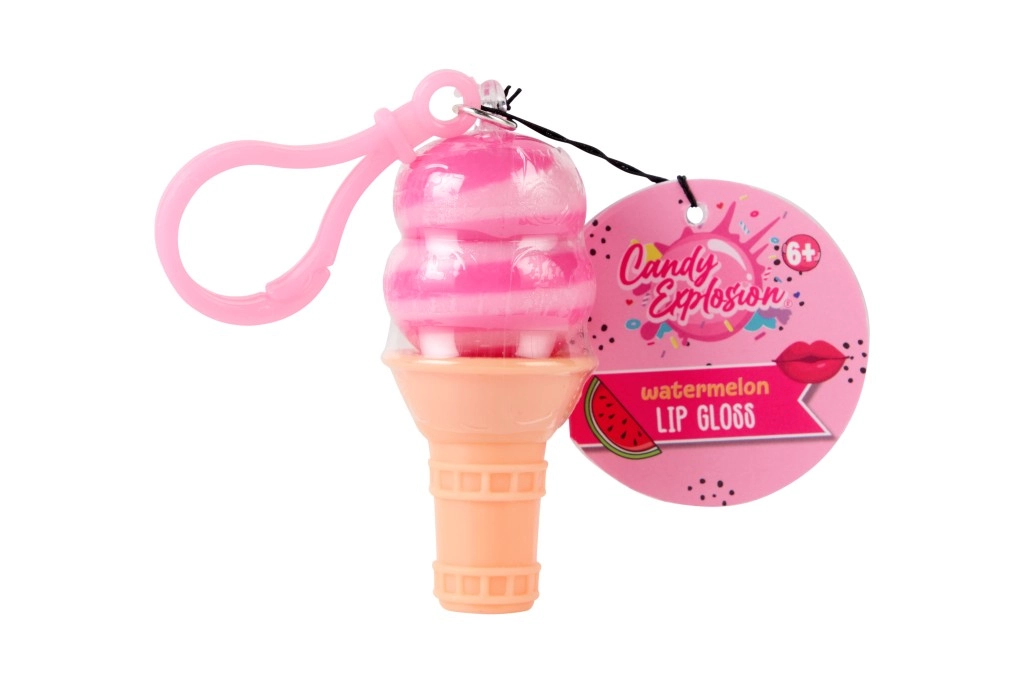 Sjajilo za usne CANDY EXPLOSION u originalnim oblicima korneta i sladoleda na štapiću pretvara svako pakiranje u malu radost. Zahvaljujući kompaktnoj veličini i klipu/omčici za pričvršćivanje lako ga pričvrstite na ruksak, ključeve ili torbicu i imat ćete njegu usana uvijek pri ruci.