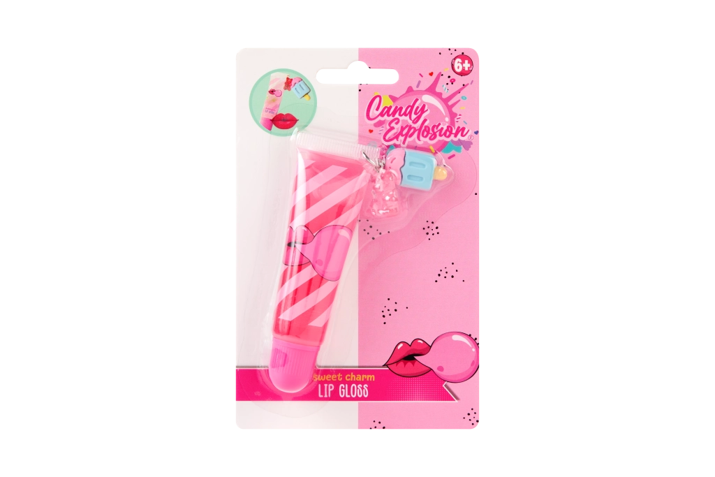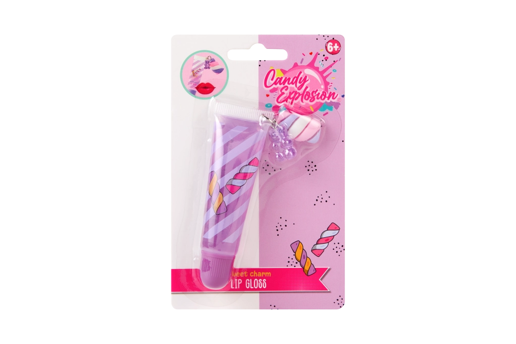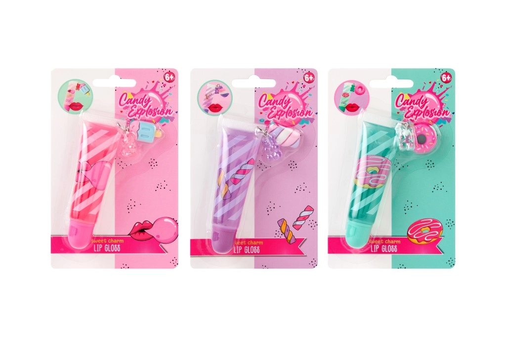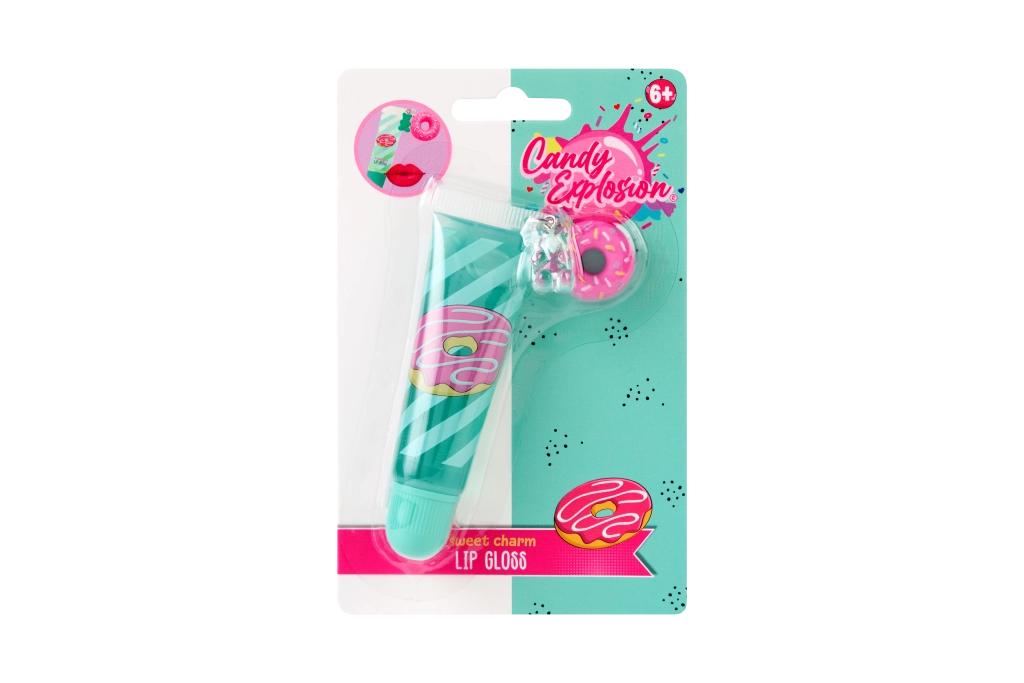 Preslatko sjajilo za usne s privjeskom Candy Explosion daje usnama nježan sjaj, hidrataciju i zabavan stil. U praktičnoj stisljivoj tubi s simpatičnim privjeskom za ključeve idealno je za male ljubiteljice beautyja i pjevanja. Dostupne su tri varijante boja s motivima krafne, sladoleda na štapiću i slatkiša.