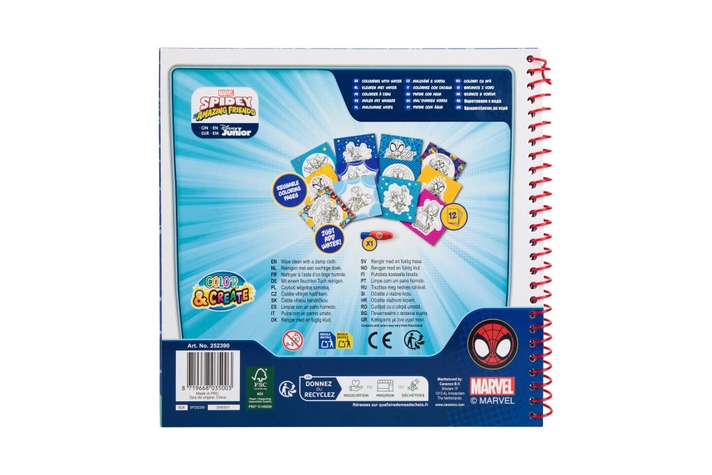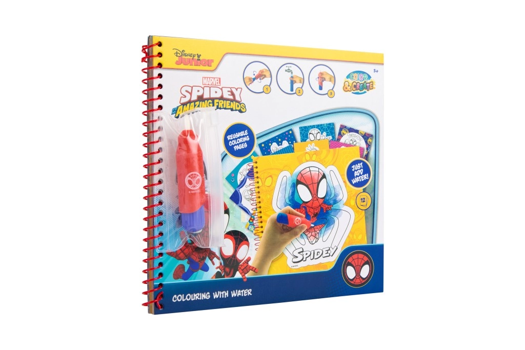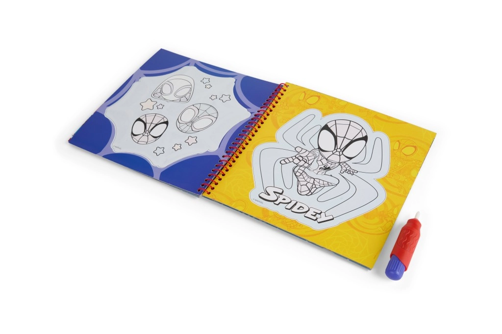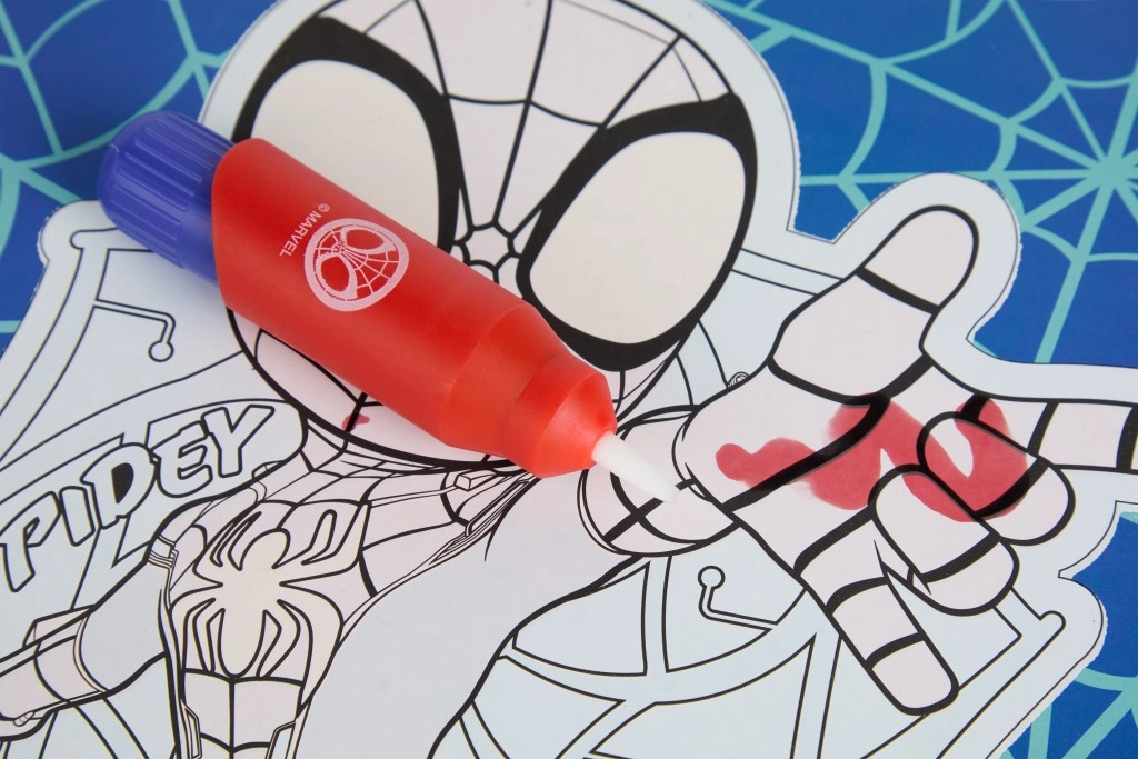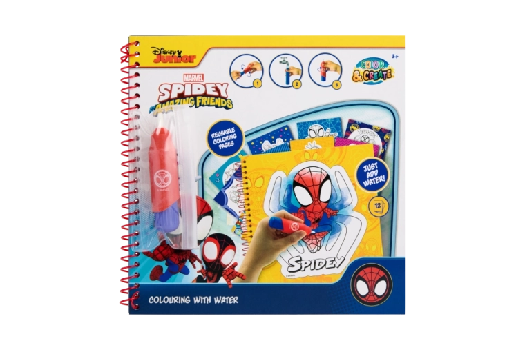 Vodena bojanka Spidey donosi djeci sate kreativne zabave bez kapi nereda. Potrebna je samo voda – bez boja i flomastera. Nakon nanošenja vode na stranicama se pojavljuju žive boje i ilustracije omiljenih junaka iz svijeta Spidey. Kada se sličica osuši, boje nestaju i djeca mogu slikati iznova i iznova.