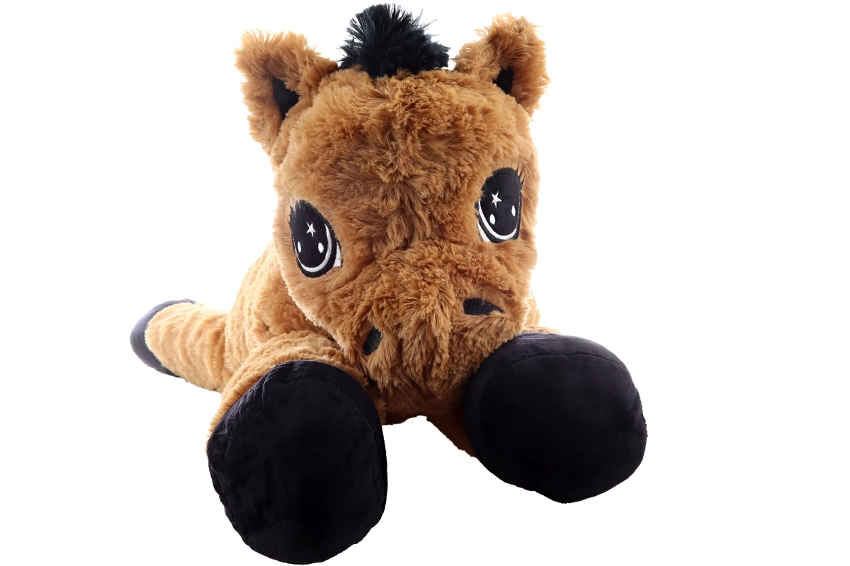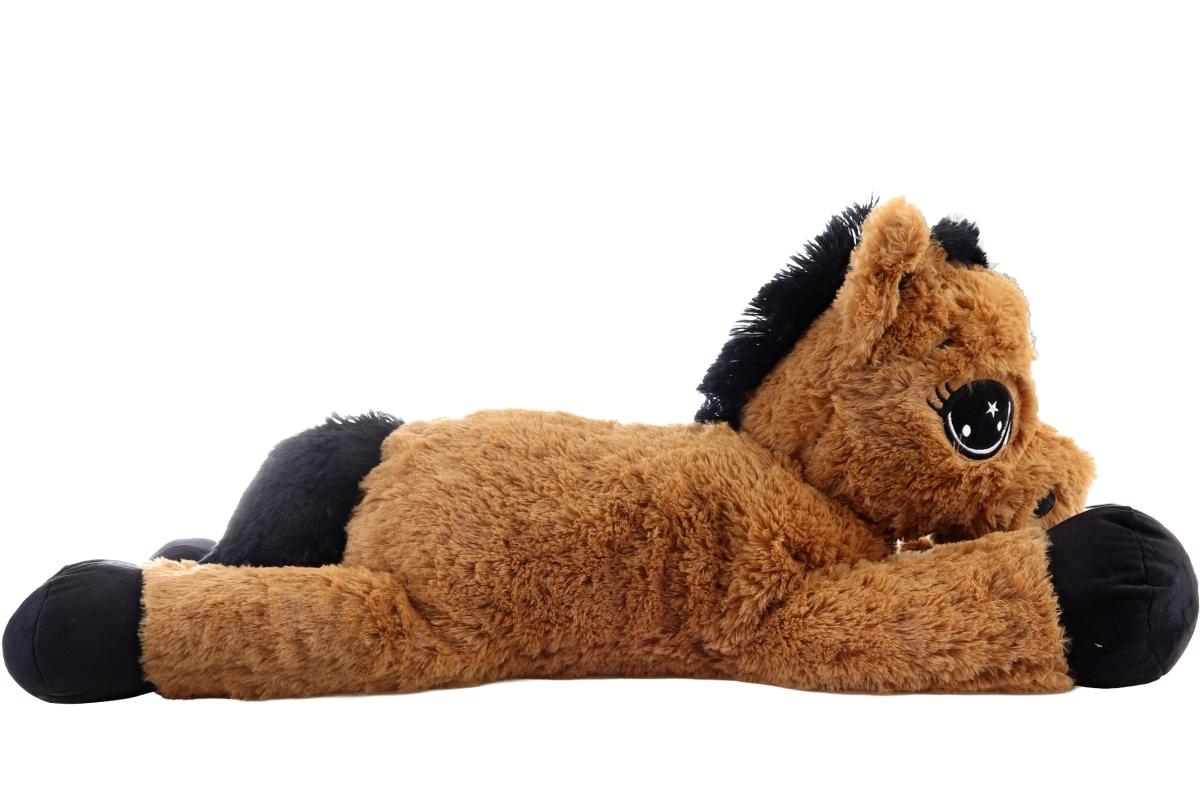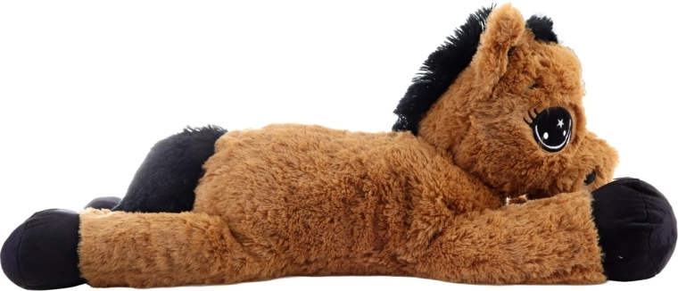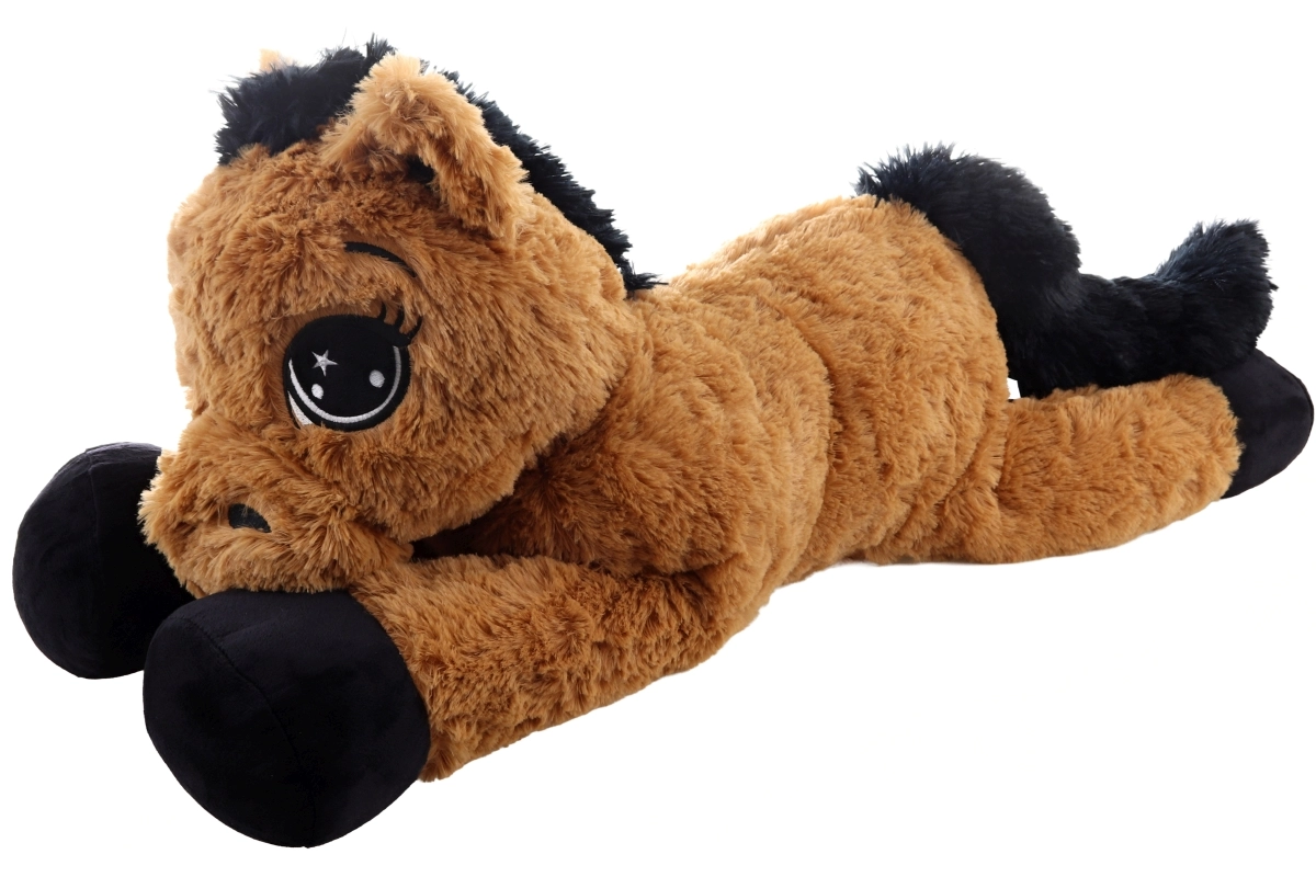 Ovaj smeđi ležeći plišani konj oduševit će na prvi dodir. Ima velike vezeno oči, mekanu grivu i rep te je istovremeno mazni prijatelj i udobna potpora pri čitanju ili gledanju crtića. Dimenzije 80 × 32 × 25 cm jamče dovoljno prostora za zagrljaj i odmor.