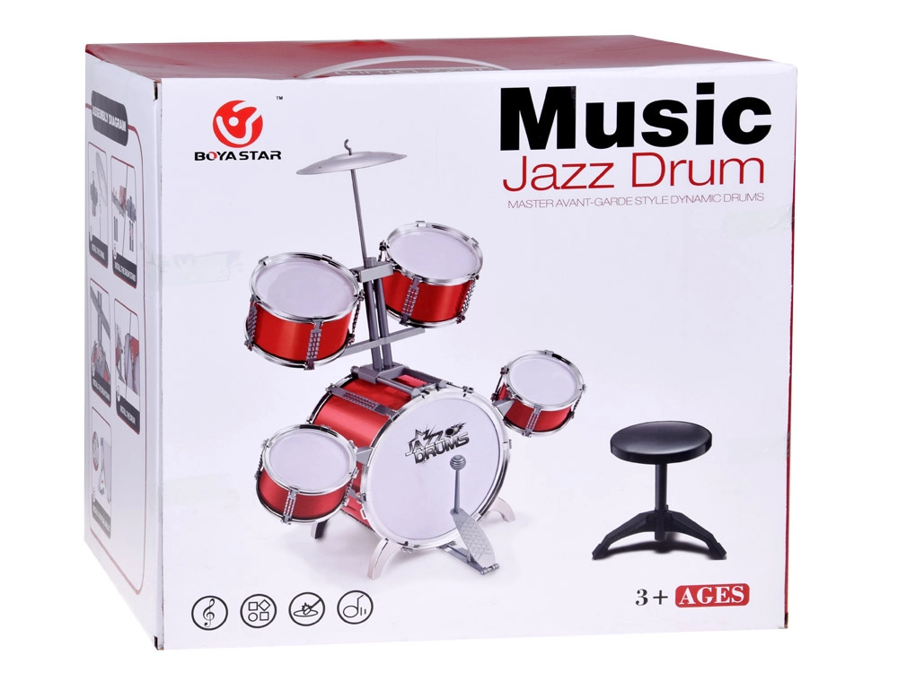 - Kompletno pakiranje: bas bubanj s pedalom, 2 srednja toma, 2 mala bubnja, činela, 2 palice, stolac.