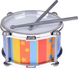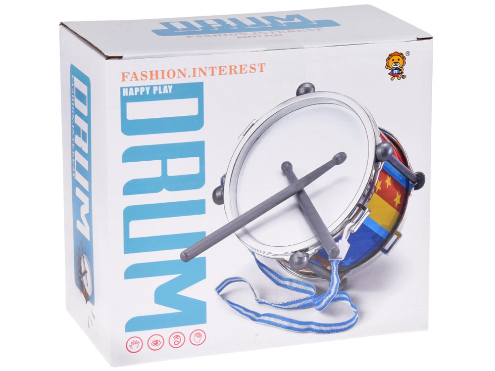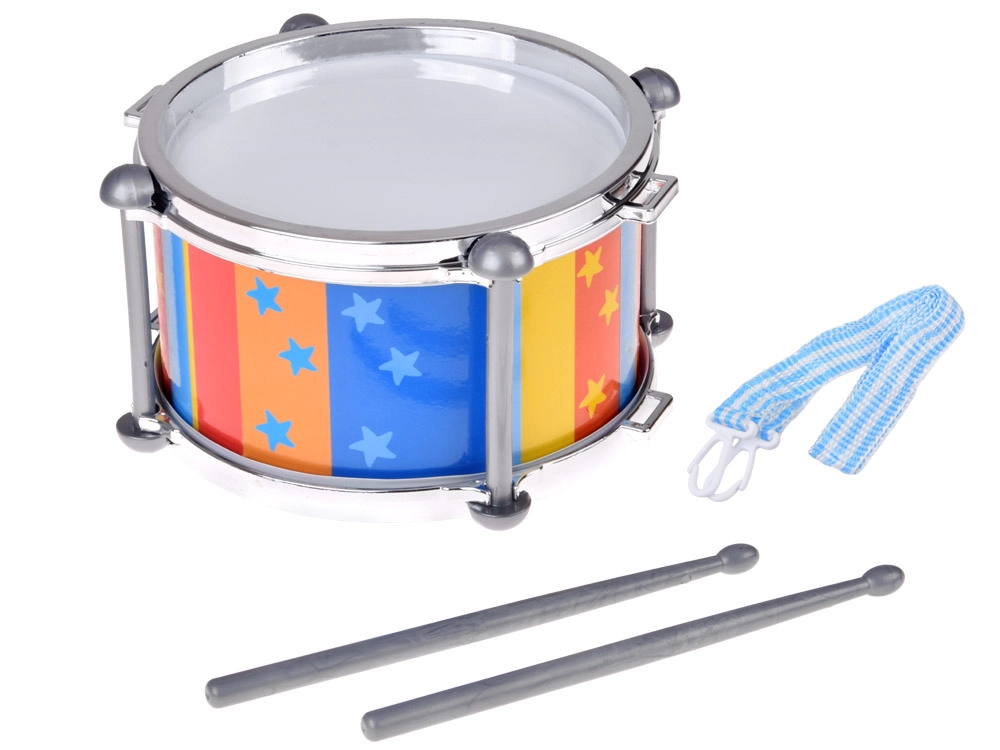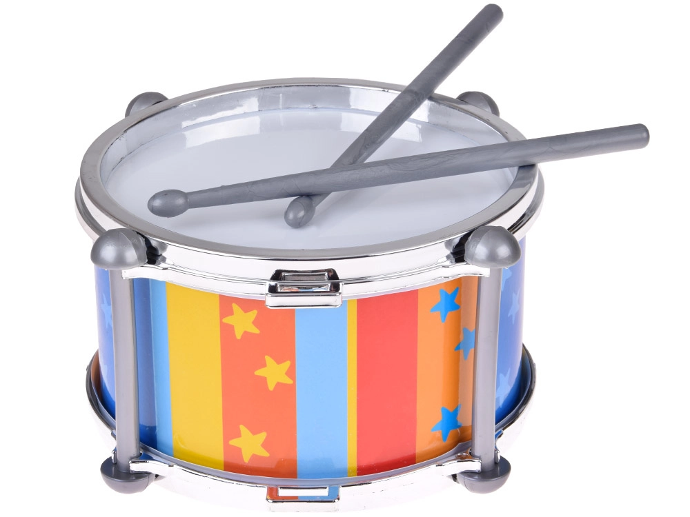 Šarene okomite pruge sa zvjezdicama i obruči metalnog izgleda čine bubanj atraktivnom igračkom i poklonom. Sviranje bubnja razvija finu motoriku, koordinaciju oko–ruka, slušnu percepciju i prirođeni glazbeni osjećaj.