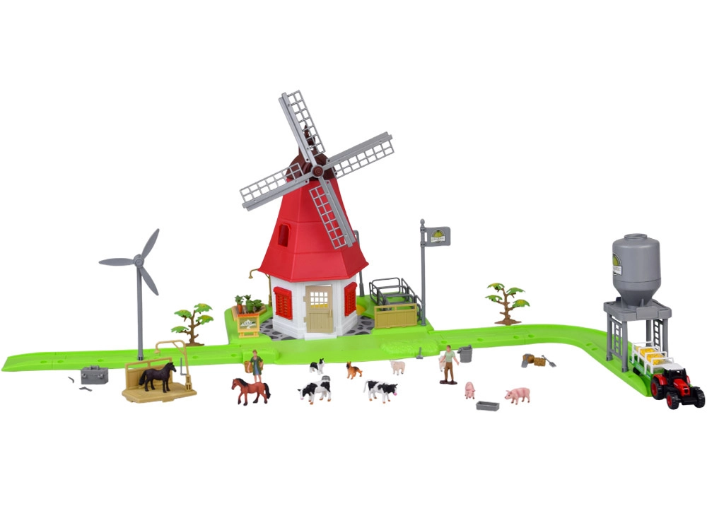 Ovaj detaljno obrađen set omogućuje djeci da postanu pravi farmeri. Dominira bijela vjetrenjača s dva kata i okretljivim lopaticama. Vrata na otvaranje, crveni kapci i otvoreni stražnji zid olakšavaju pristup interijeru. Okruženje upotpunjuju vrt, ograde za životinje, silos, prometna signalizacija i dekorativna stabla.