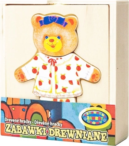 Zabavna drvena slagalica za najmlađe u kojoj djeca oblače medvjedića u razne odjevne kombinacije. U praktičnoj drvenoj kutijici nalaze se različiti drveni komadi odjeće za umetanje i kombiniranje, koji potiču finu motoriku, kreativnost i prepoznavanje boja i emocija.