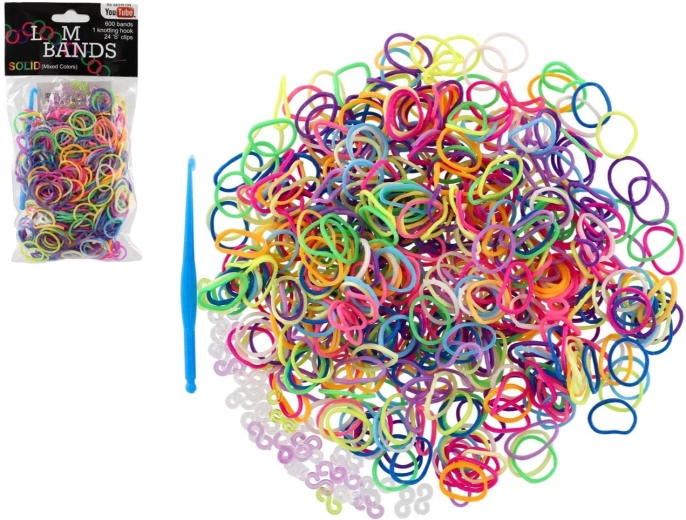 Izradi originalne narukvice, prstenje i privjeske s ovim kompletnim setom za pletenje od gumica. Pakiranje sadrži 600 šarenih gumica, kukicu za pletenje i 24 S-kopče za lako zatvaranje. Jednostavna upotreba i beskrajne mogućnosti kreativnosti razveselit će djecu i odrasle.