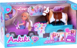 Krenite u seoske avanture s Woopie setom za igru, gdje lutkica Niki vozi ljubičasti terenski automobil i prevozi konja u tirkiznoj prikolici. Lutkica ima dugu plavu kosu za češljanje, a konj je opremljen sedlom i uzdom. Idealna igračka za razvoj mašte i kreativnosti djece od 3 godine.
