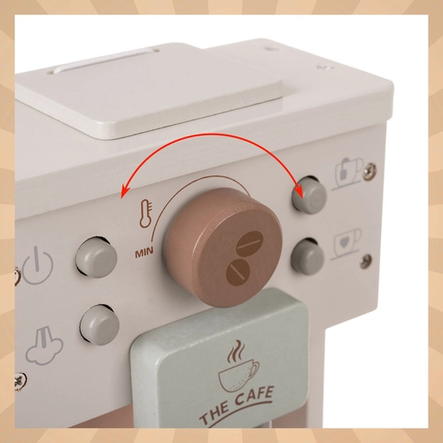 Priredite djeci radost vlastitog kafića. Drveni aparat za kavu KRUZZEL promišljena je edukativna igračka koja razvija maštu, koordinaciju oko-ruka i uči samostalnosti. Zahvaljujući suzdržanoj paleti boja uklapa se u moderne i klasične dječje sobe.