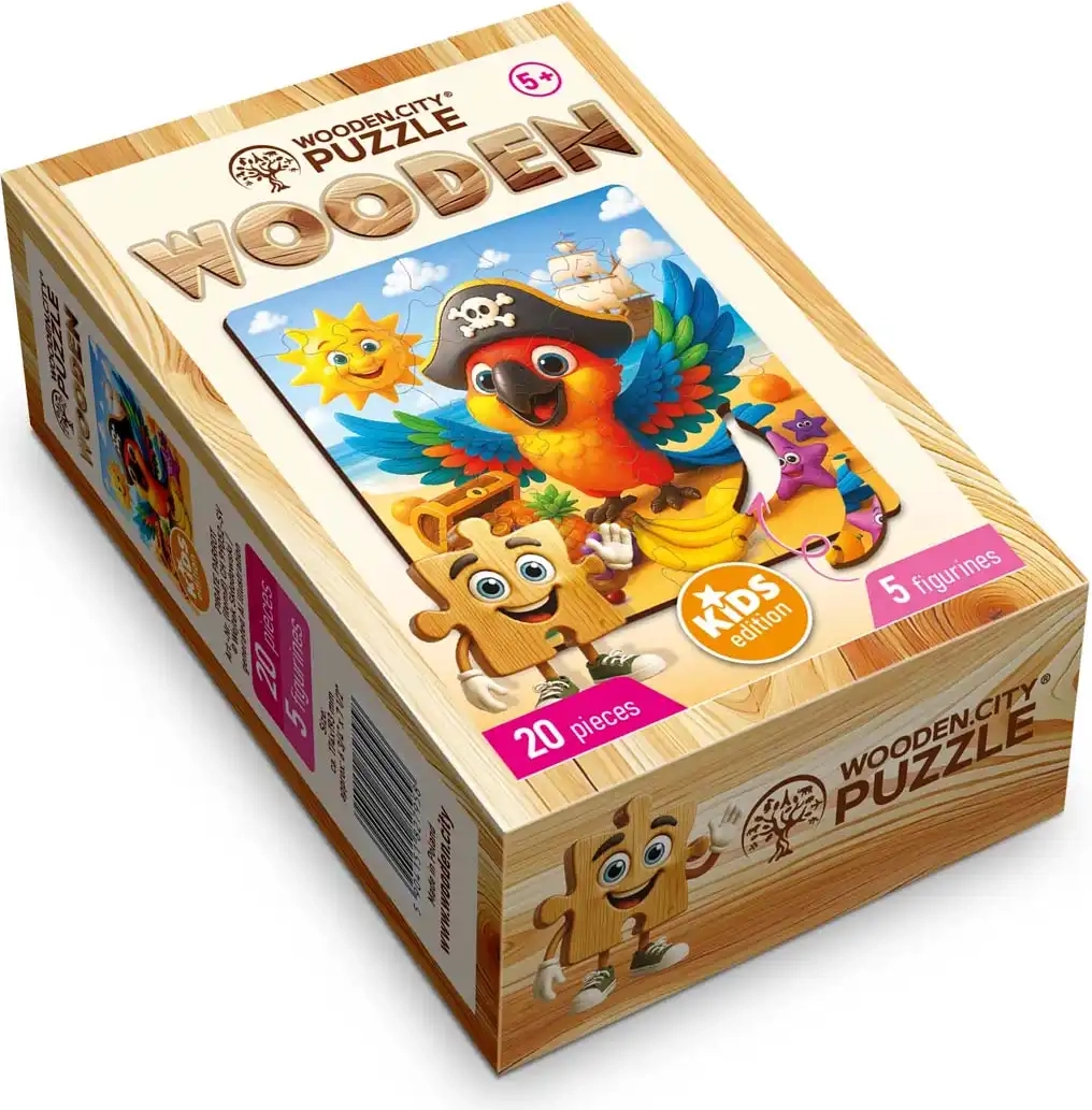 Drvene puzzle WOODEN CITY Piratski papagaj idealan su izbor za prvo slaganje ili kao zabavan poklon. Zahvaljujući pažljivoj izradi i prekrasnom motivu, djeca će uživati u svakom dijelu i postupno stvoriti očaravajuću scenu papagaja u piratskom stilu.