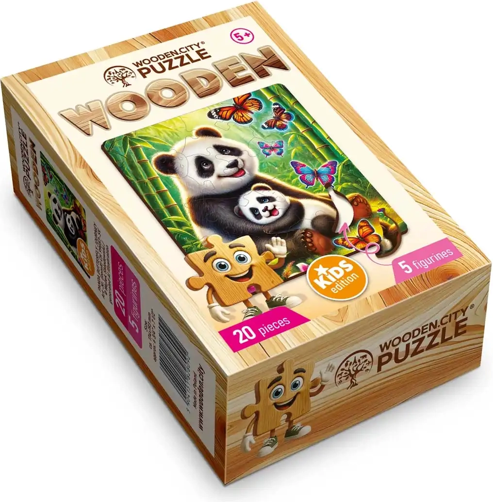 Ove drvene puzzle WOODEN CITY idealan su izbor za prve slagalice ili kao lijep poklon. Zahvaljujući kvalitetnoj izradi od izdržljivog drva i glatkim rubovima odlično leže u ruci, a slaganje je sigurno i za mlađu djecu. Očaravajući motiv pande stvara nakon slaganja atraktivnu scenu dimenzija cca 17,4 × 19,3 cm.