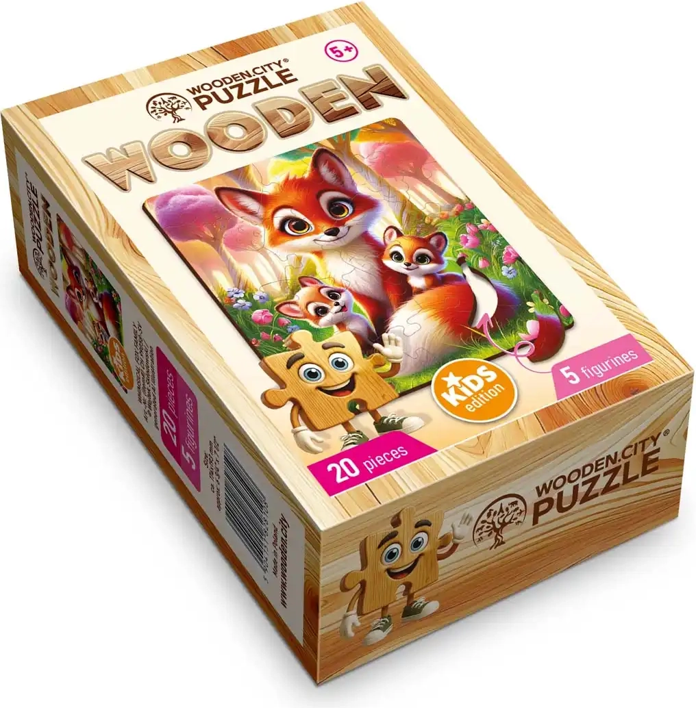 Drvene puzzle WOODEN CITY s motivom lisje obitelji razveselit će svakog malog ljubitelja životinja. Zahvaljujući pomno izrezanim dijelovima odlično se slažu i stvaraju očaravajuću scenu koja djecu motivira na daljnje istraživanje.