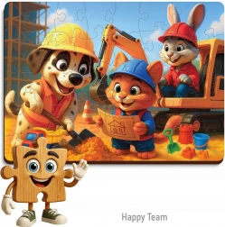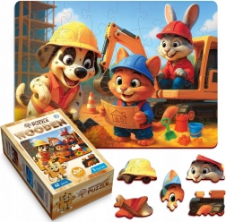 Drvene puzzle WOODEN CITY Veseli tim donose djeci zabavno slaganje s kvalitetnom izradom i ugodnim drvenim materijalom. Zahvaljujući 40 čvrstih dijelova i 5 posebnih oblika djeca vježbaju finu motoriku i logičko razmišljanje te uživaju u šarenoj sceni s preslatkim životinjskim graditeljima.
