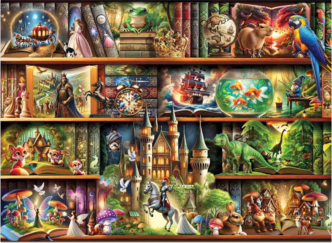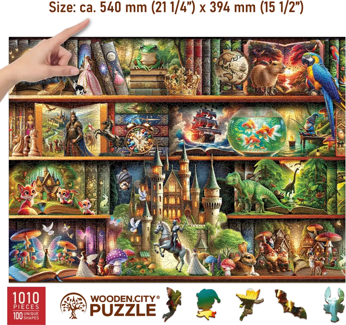 Priuštite si kreativni odmor s originalnim drvenim puzzlama „Priča na svakoj polici“. Zahvaljujući laserski preciznoj izradi, dijelovi savršeno pristaju, a cjelina nakon slaganja drži oblik. U pakiranju je predložak za lakšu orijentaciju te motiv pun detalja koji će vas zabavljati dok ga otkrivate dio po dio.