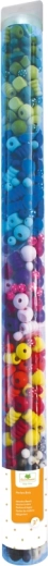 Ovaj kreativni set šarenih drvenih perli idealan je za prve izrade narukvica, ogrlica ili sitnih ukrasa. Zahvaljujući preglednoj prozirnoj tubi, sve perle i konac uvijek su pri ruci i lako se spremaju bez nereda.