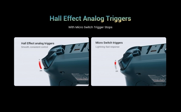 Mag-Res TMR štapići osiguravaju gladak, precizan pomak i dug vijek trajanja. Hall Effect triggeri s klik-stop mikrosklopkama i Hair Trigger načinom nude maksimalnu kontrolu.