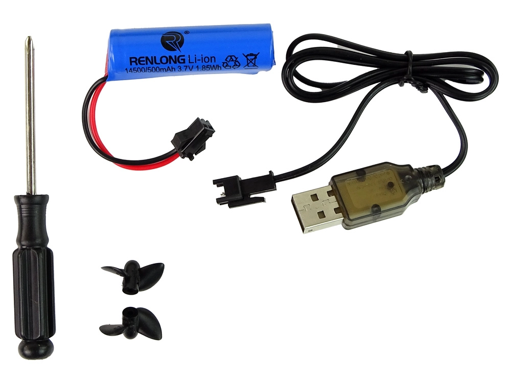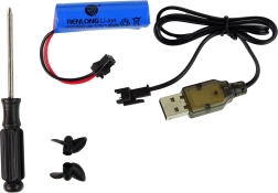 Upravljač, akumulator, USB kabel, 2 elise/vijka, postolje, odvijač, upute