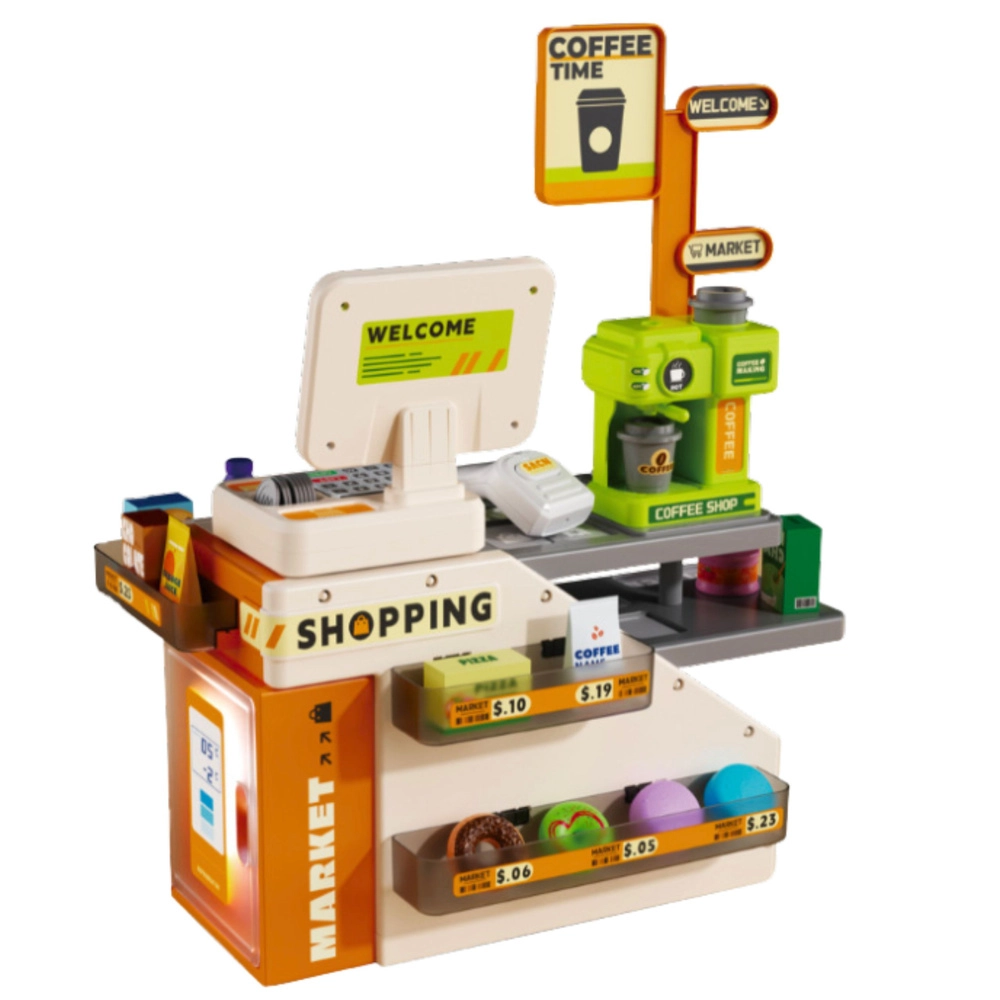 Šarena dječja blagajna s ugrađenim kafićem nudi kompletno prodajno mjesto malog trgovca. Sadrži funkcionalni skener, veliki aparat za kavu na vodu, otvarajući pult i hladnjak, kao i bogatu opremu. Realistični svjetlosni i zvučni efekti potiču maštu, razvijaju računanje, koordinacijske vještine i igru uloga.