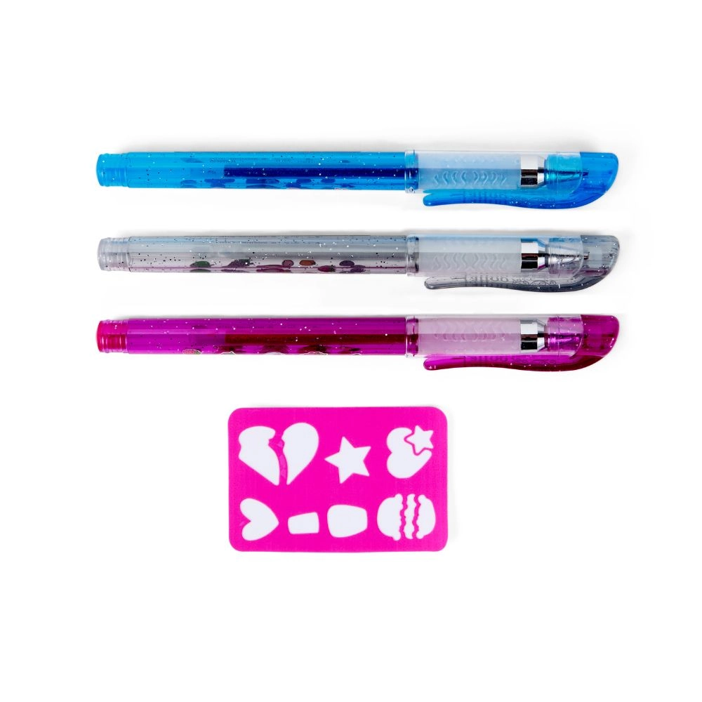 Tri gel olovke u boji s glitterom dat će tvojim motivima WOW efekt. Idealne za crtanje po koži i fine linije uz šablonu.