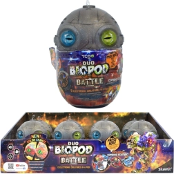 Figurice Biopod – Duo Battle Edition donose dvije kapsule pune iznenađenja i napetosti. Već na prvi pogled privući će te svjetleće oči vidljive kroz crnu kapsulu. Dodirni im glavu i promatraj promjenu boja koja otkriva timsku pripadnost. U svakom Biopodu naći ćeš dinosaura kojeg ćeš lako složiti od nekoliko dijelova – sjajno za djecu koja vole stvarati i akciju.