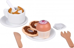 Bogati dodaci uključuju šalice sa tanjurićima i žličicama, čaše s poklopcima za van (Tea, Coffee), karton mlijeka, pribor za jelo, razne kolačiće, mafine, kekse i čokoladice, te jednostavan meni. Sve je savršeno prilagođeno malim ručicama i potiče finu motoriku, koordinaciju oko–ruka i društvene vještine.