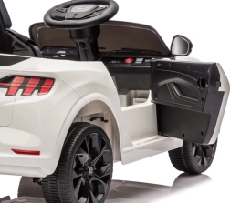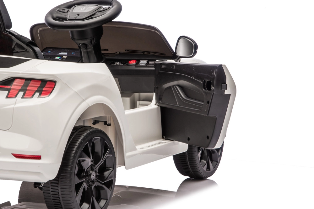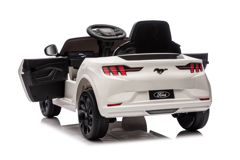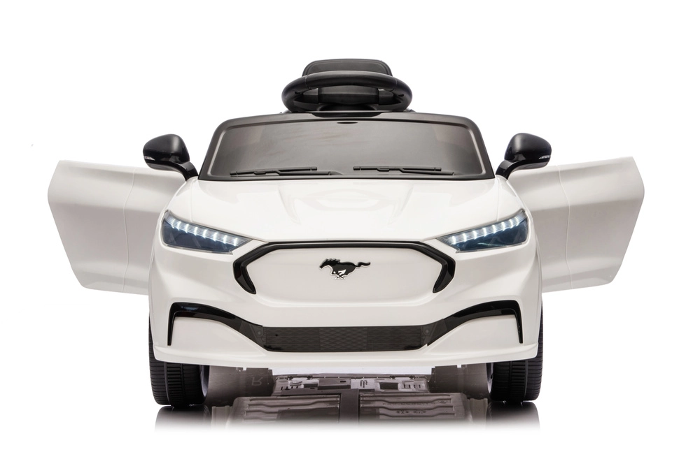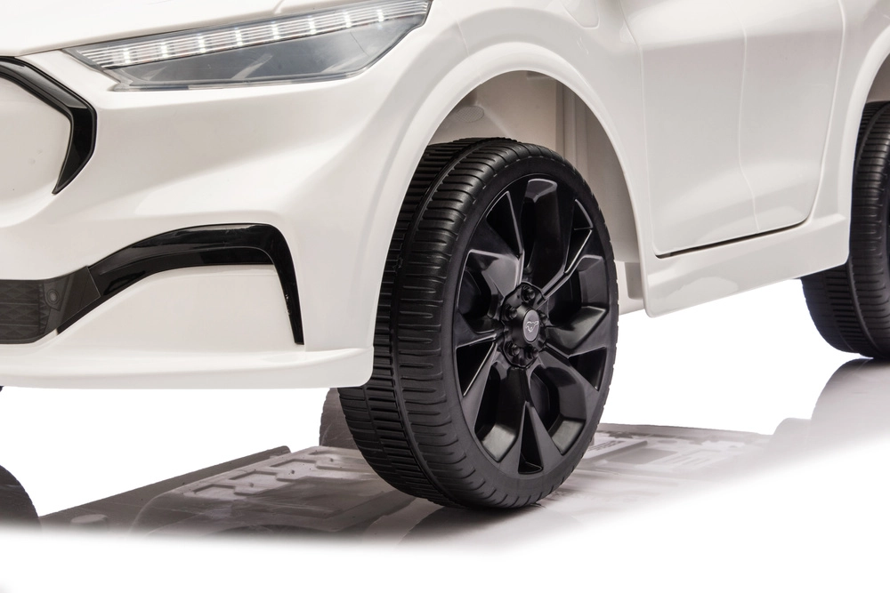 Stilski dječji električni autić FORD MUSTANG MACH‑E 24V u bijeloj boji nudi realističan izgled, udobno sjedenje i sigurnu vožnju. Snažan 24V pogon, otvarajuća vrata, LED svjetla i sportski kotači oduševit će male vozače i roditelje koji traže kvalitetnu i zabavnu vožnju.